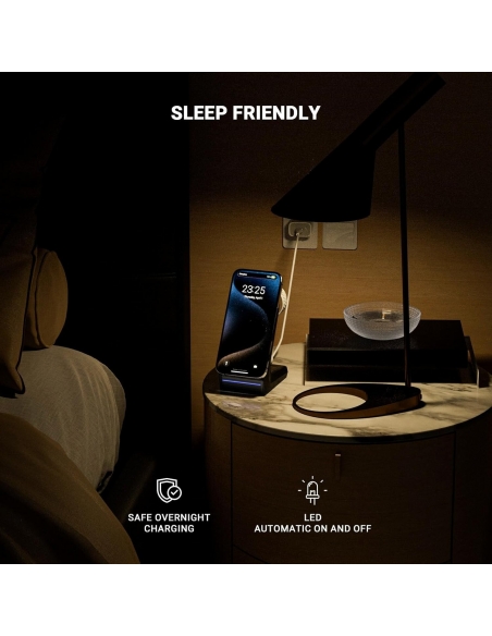 - Il caricabatterie di sicurezza magnetico per iPhone può caricare l'iPhone 15/14/13/12 serie con una velocità massima di 15 W e ottenere un allineamento magnetico senza interruzioni. Dopo la ricarica al 100% di notte, interrompe automaticamente la ricarica e fornisce la protezione più sana per le batterie di più dispositivi per garantire una ricarica sicura.