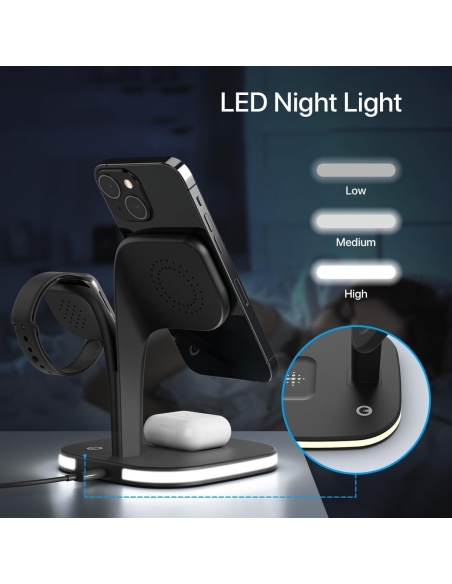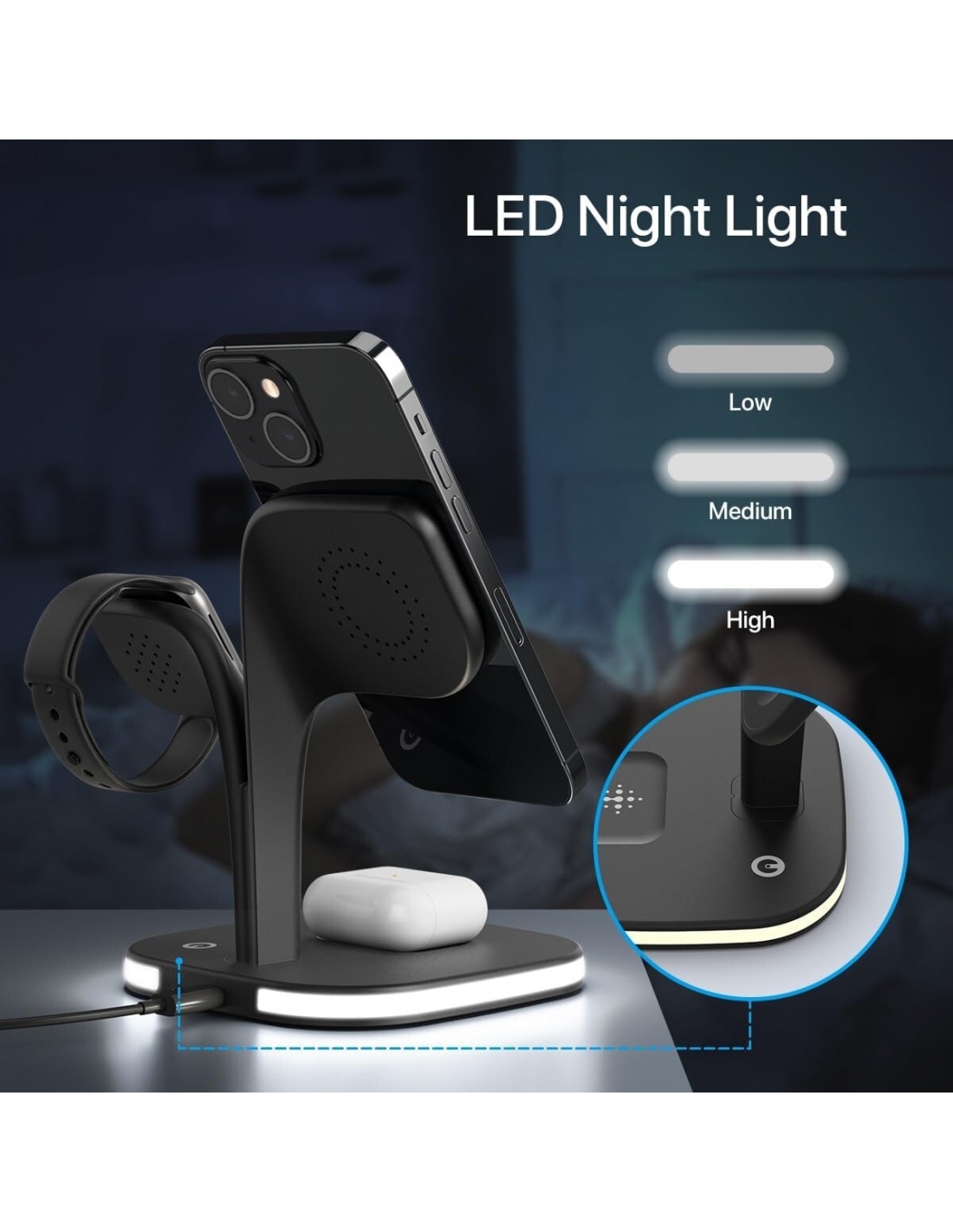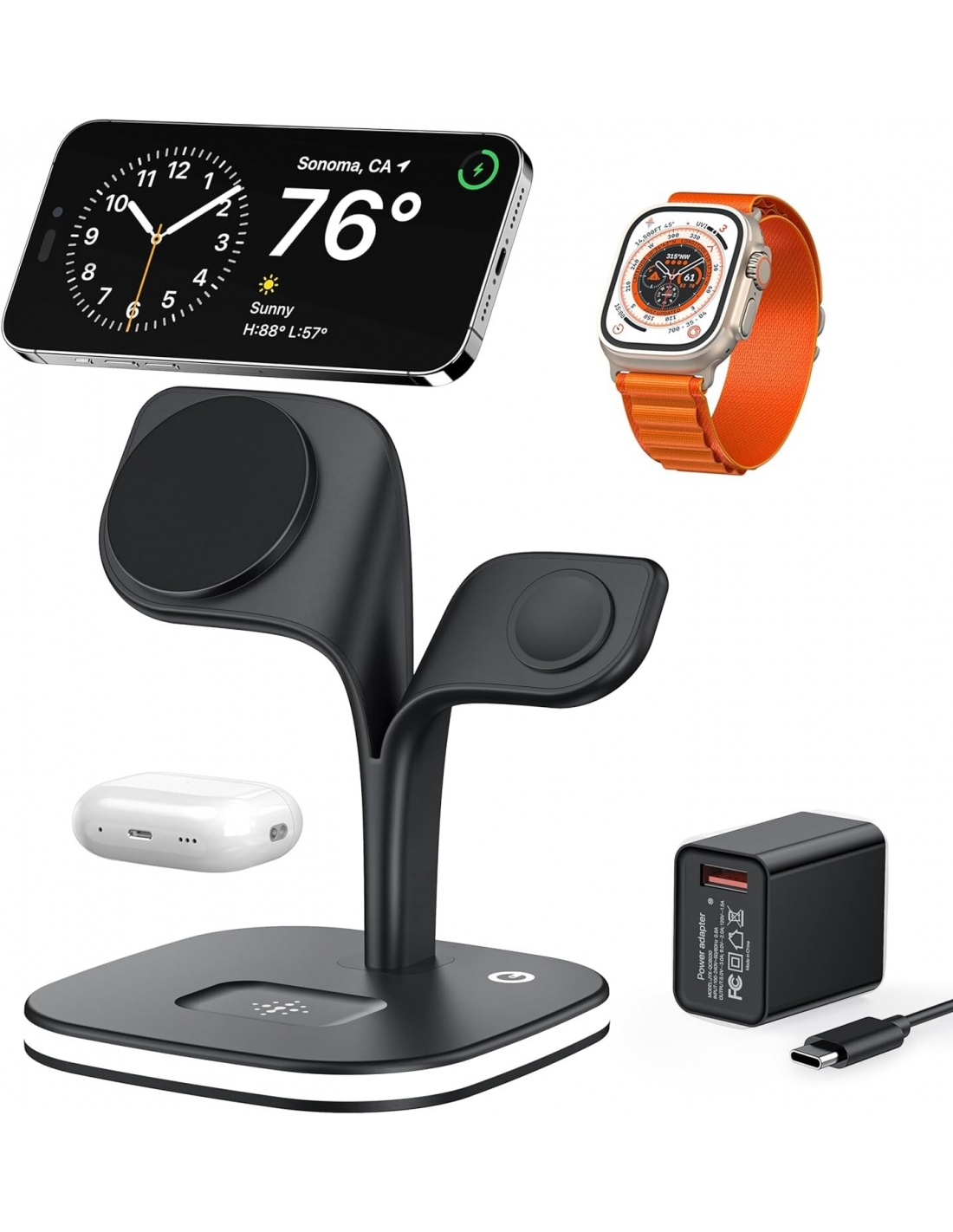 EXW caricabatterie Stazione di ricarica wireless 5in1 Magsafe iPhone16/15/14/13/12, Apple Watch serie 1-9 AirPods con LED e adattatore