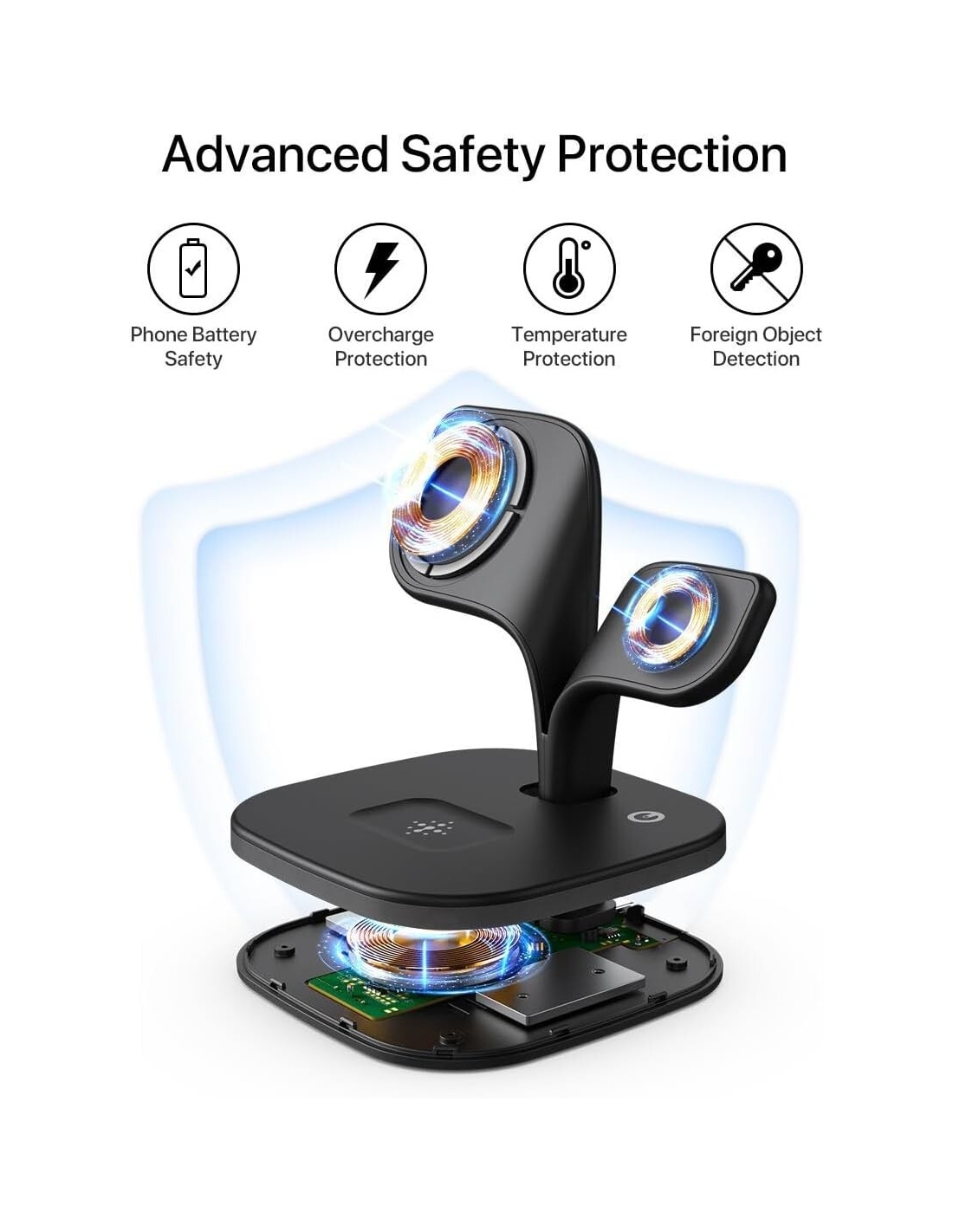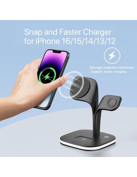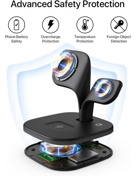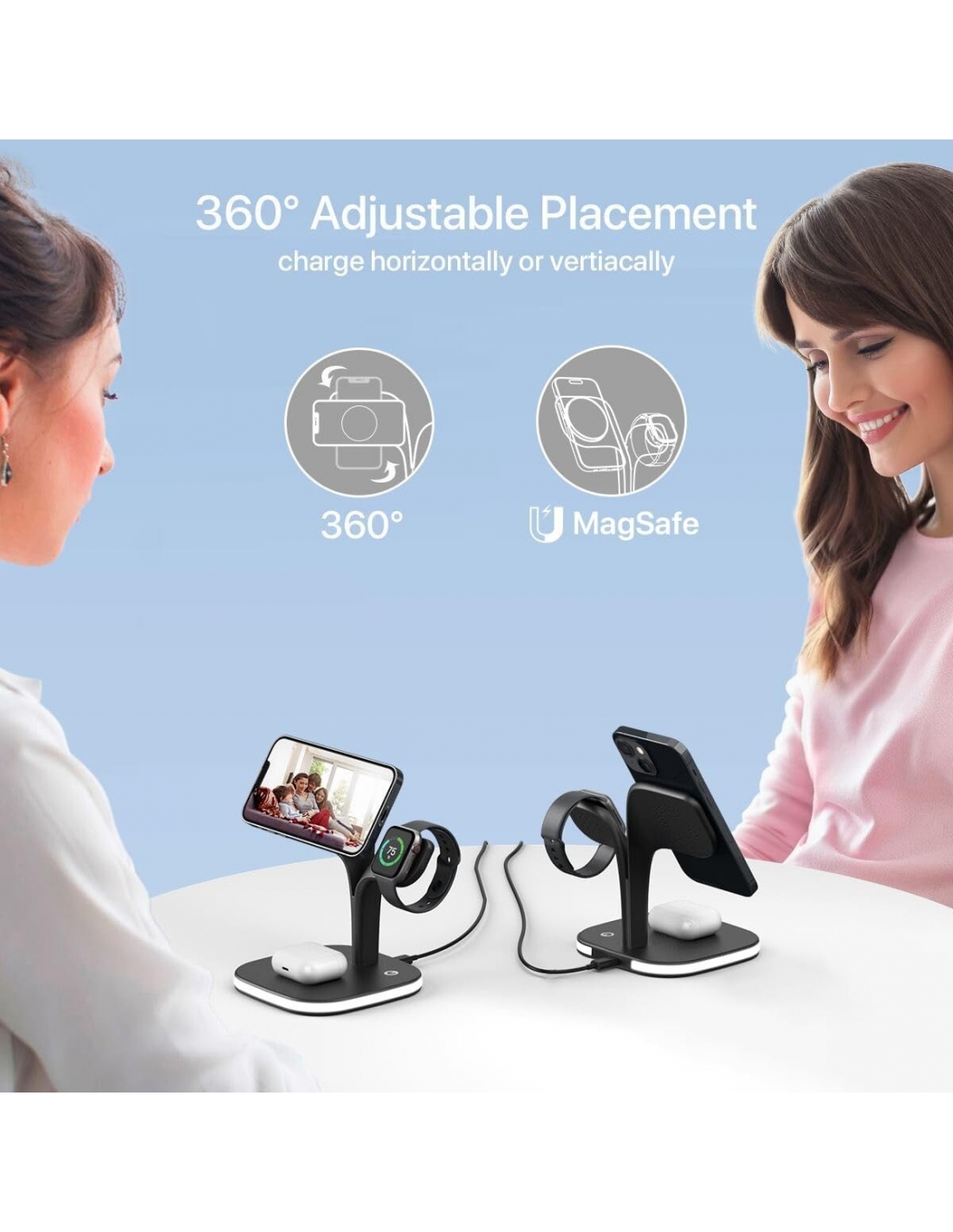 - Il dispositivo si allinea con il magnete del caricabatterie Magsafe per una ricarica wireless più veloce e sicura. Fornisce una ricarica rapida al tuo iPhone 16, 15, 14, 13, 12 Pro/Pro Max/Mini/Plus, caricando dallo 0 all'80% in circa 1,5 ore. Il caricabatterie wireless per iWatch per Apple Watch 1/2/3/4/5/6/7/8/9/Ultra/SE e la stazione di ricarica caricano simultaneamente anche gli AirPods 2/3 Pro/Pro 2 e altri telefoni con funzionalità di ricarica wireless.