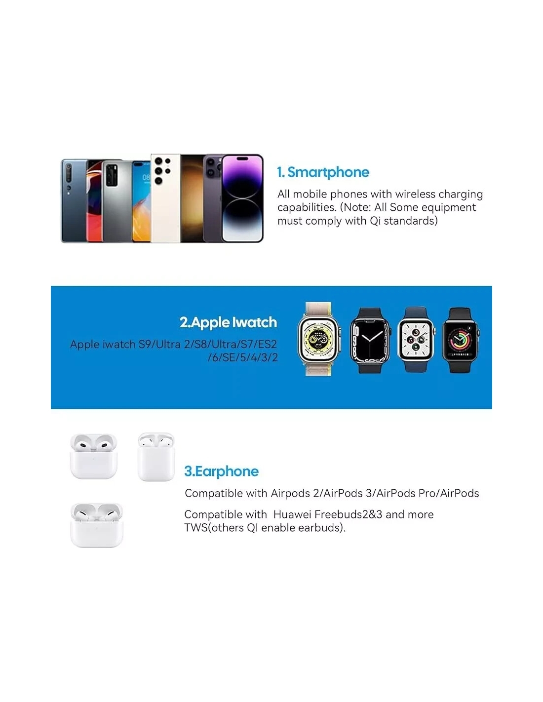 ODS 3 2 PRO Caricabatteria Wireless Magnetico 6 in 1 Orologio Telefono Cuffie