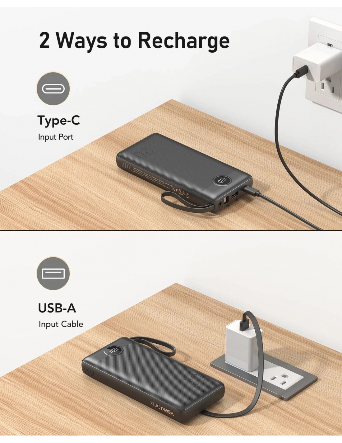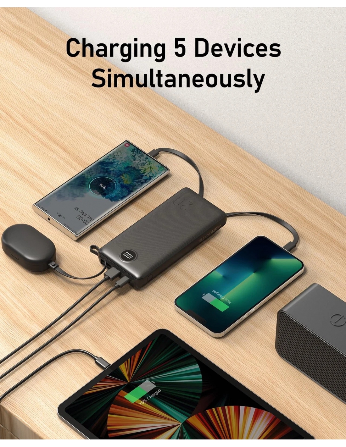 Power Bank 20000mAh con Cavi Integrati Caricatore Portatile USB C