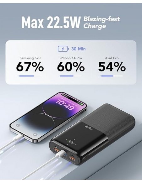 VIYISI External Battery 30,000 mAh, 22.5 W Quick Charge Power Bank USB C