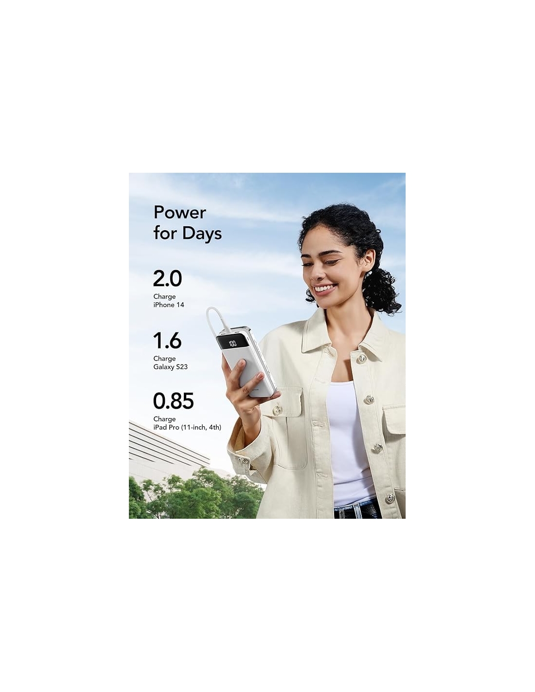 - 【Facile da leggere】Display LED mostra l'energia rimanente in percentuale anche la tensione e intensità di corrente. Assicura un controllo facile e una capacità della batteria accurata, mantiene i dispositivi sufficientemente alimentati in qualsiasi momento critico.