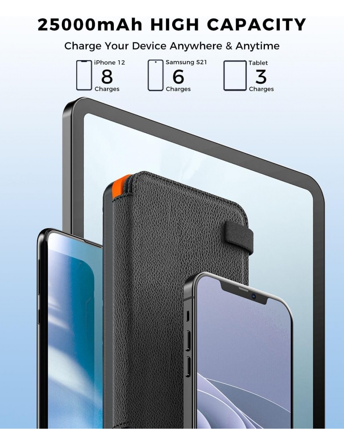 - Cosa ottieni: Caricabatterie portatile da 25000 mAh, cavo USB, manuale utente.