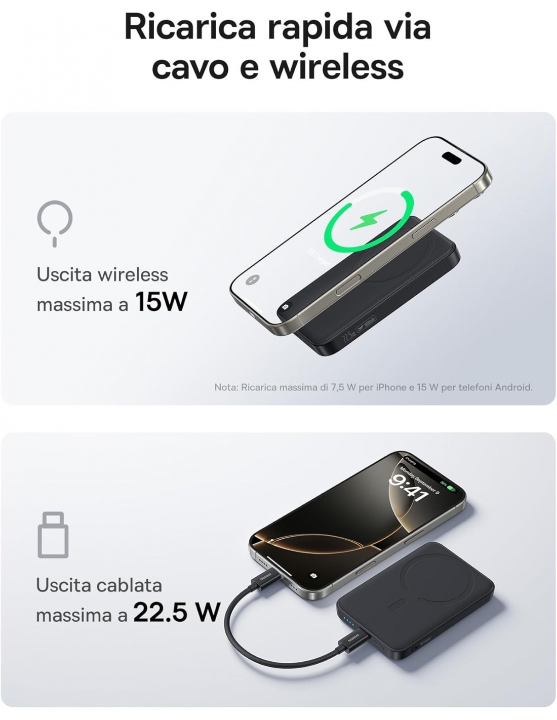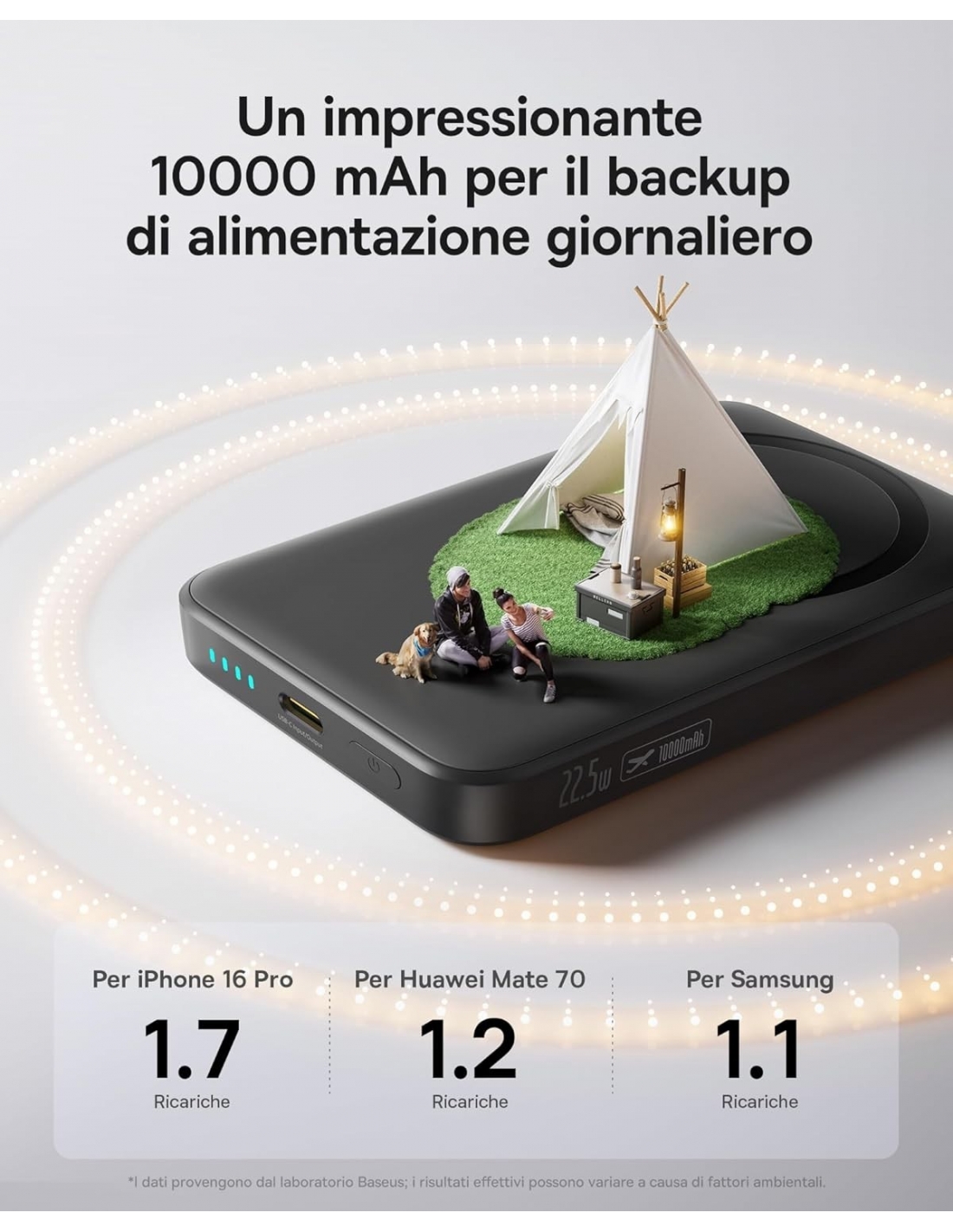 - Ricarica cablata e wireless: Baseus powerbank usb c supporta la ricarica wireless da 15 W per telefoni Android e 7,5 W per iPhone; 20 W di ricarica cablata per iPhone e 22,5 W per Android. Scegli il modo in cui desideri ravvivare il tuo dispositivo.
