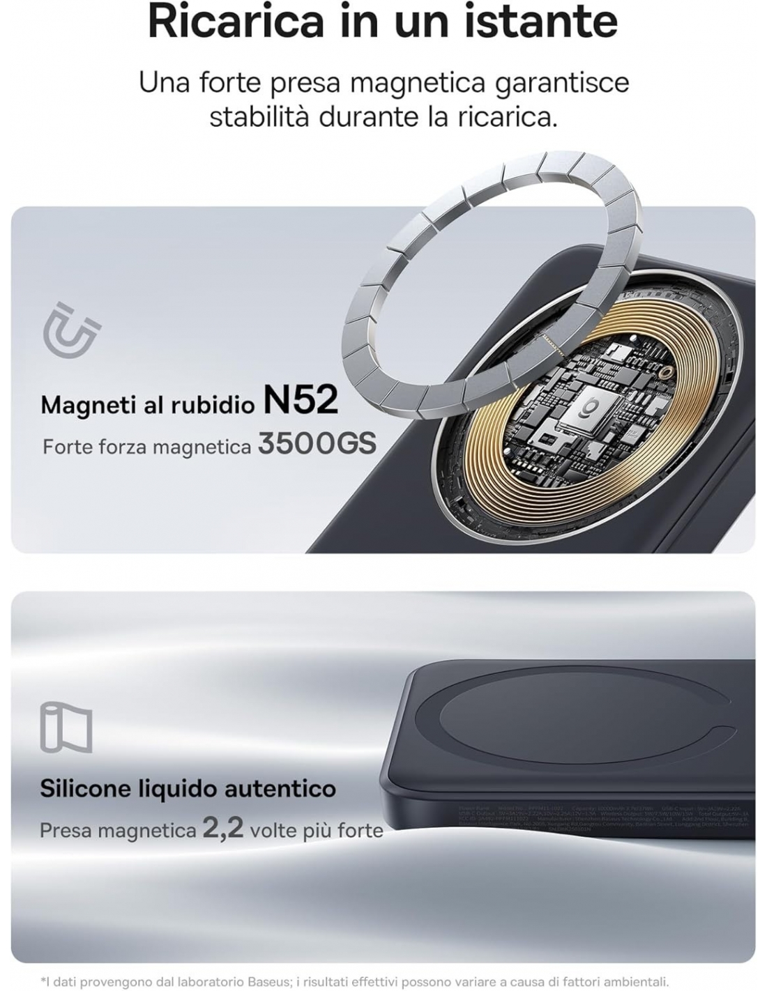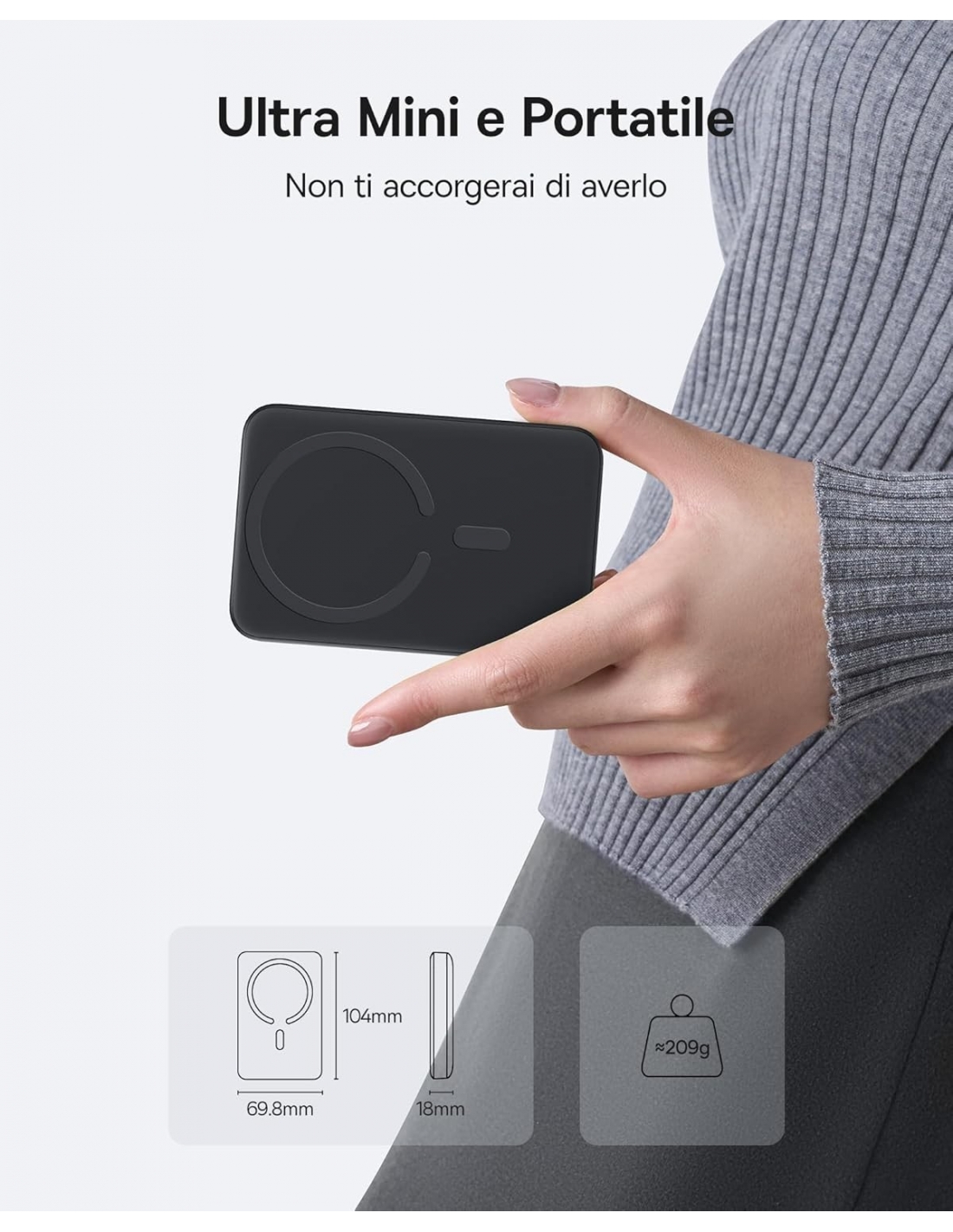 - Snap per la ricarica con forte impugnatura magnetica: i magneti al rubidio N52 integrati forniscono una forza magnetica di 3500GS e garantiscono un facile allineamento automatico per una ricarica rapida e stabile. *Per la funzione di attrazione magnetica, il telefono cellulare stesso deve supportare l'attrazione magnetica o utilizzare una custodia magnetica.