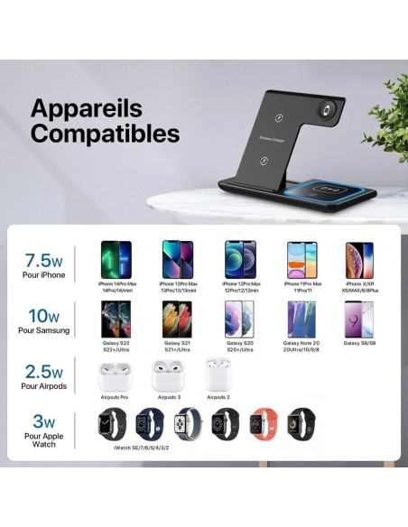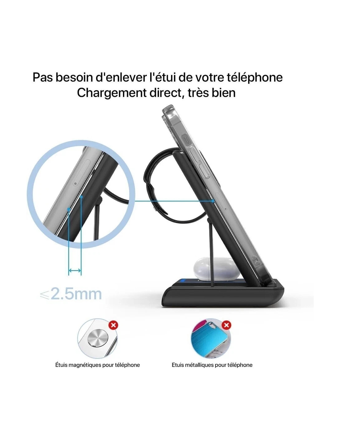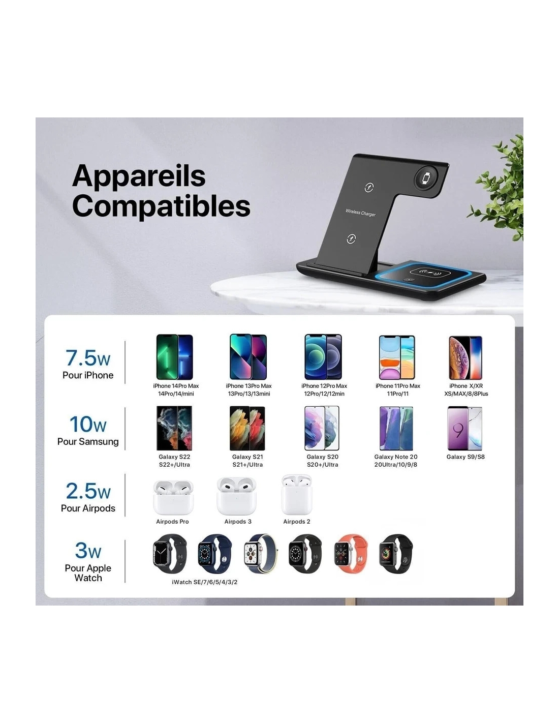 Caricabatterie Wireless 3 in 1: Questa stazione di ricarica può caricare la maggior parte dei telefoni, supporta la ricarica rapida per più dispositivi Apple contemporaneamente, compatibile con iPhone 15/14/13/13Pro/13 Pro Max/12/12 Pro/12 Pro Max /SE/XR/X/XS/XS Max/11 Pro Max/11 Pro/11/8 Plus/8 o Android;Apple Watch 8/7/6/5/4/3/2/SE Airpods Pro/3/ 2 con custodia wireless (non per la versione non wireless degli Airpods 2). Un dispositivo indispensabile per gli appassionati di Apple. Dì addio ai caricabatterie individuali.