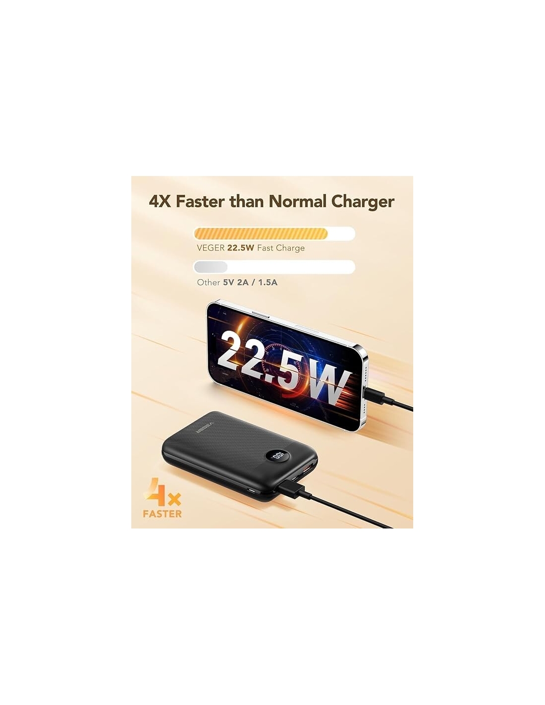 VEGER Power Bank 20000mAh, 22.5W Caricatore Portatile Ricarica Rapida PD3.0 QC4.0, 3 uscite USB C Powerbank Display a LED compatibile con iPhone 14/13/12 iPad Samsung S22 S21 Huawei Xiaomi Tablet ecc