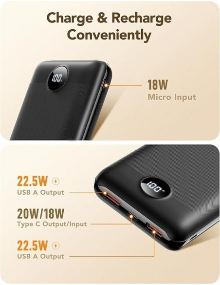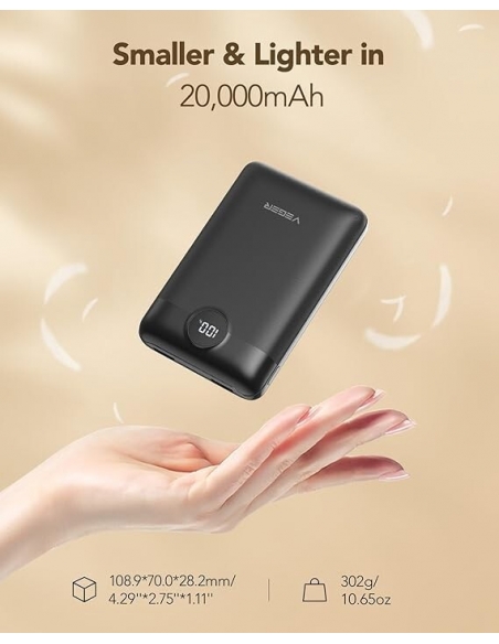 VEGER Power Bank 20000mAh 22.5W Caricatore Portatile Ricarica Rapida Universale