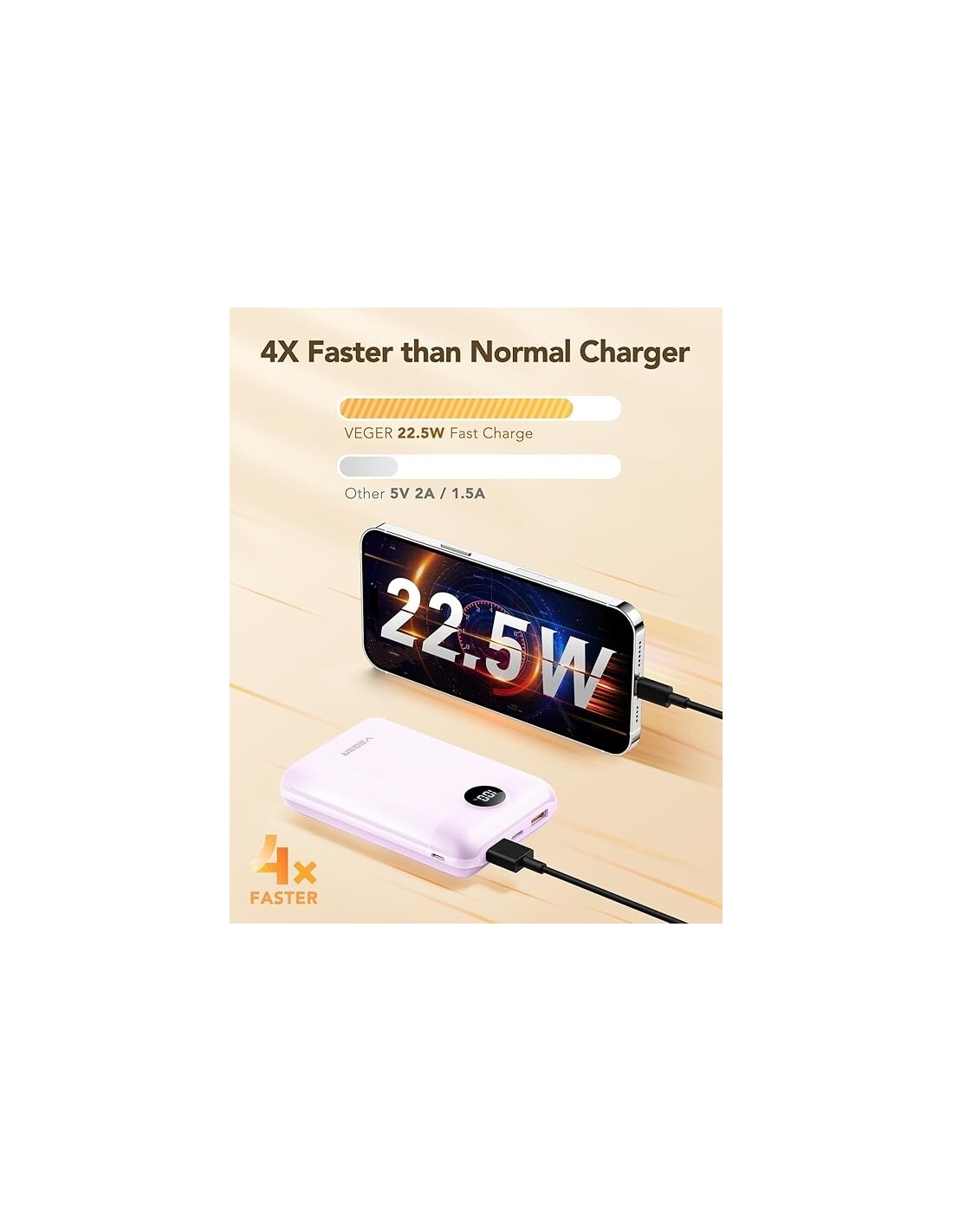 VEGER Power Bank 20000mAh 22.5W Caricatore Portatile Ricarica Rapida Universale.