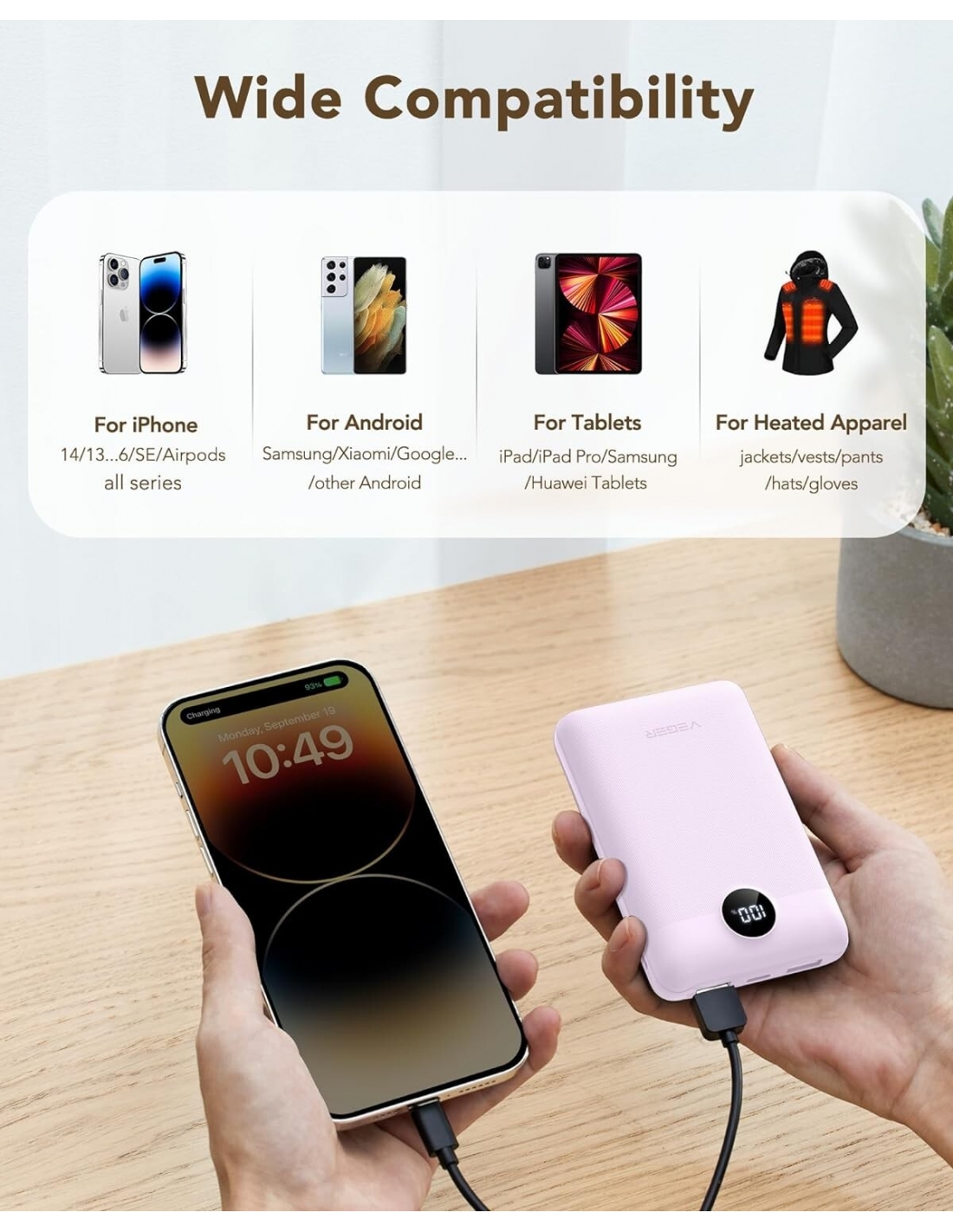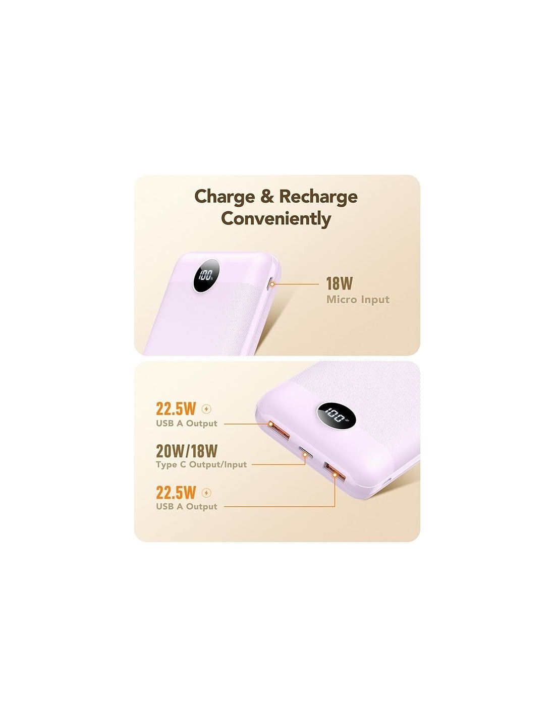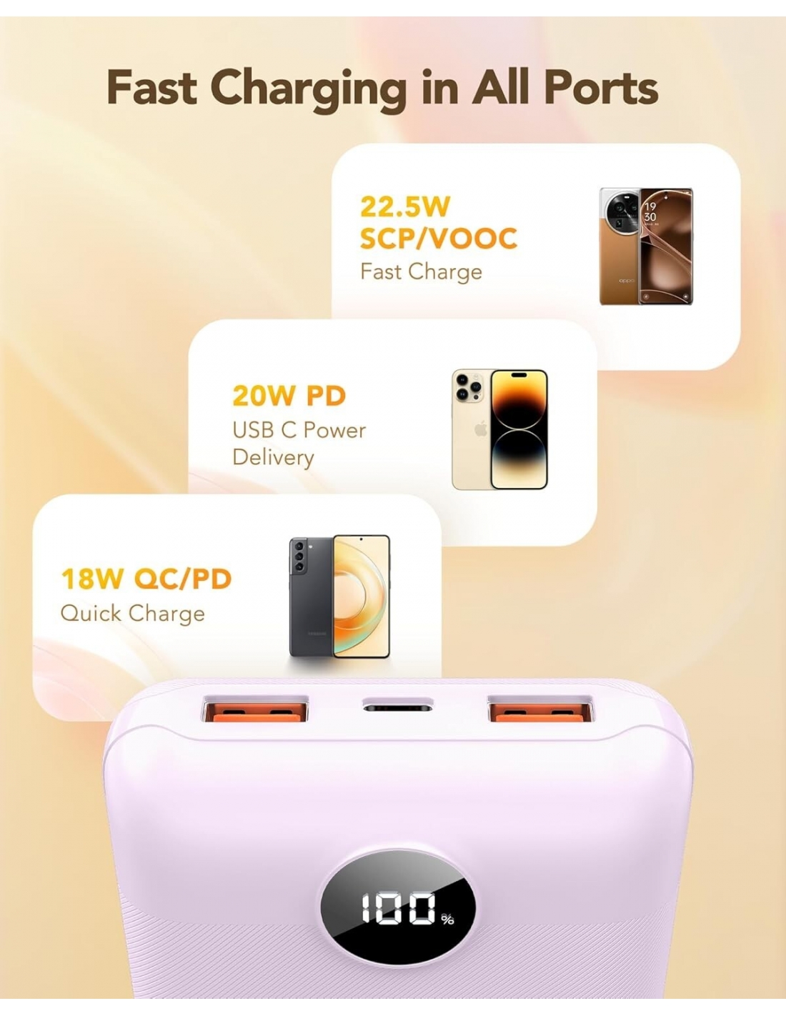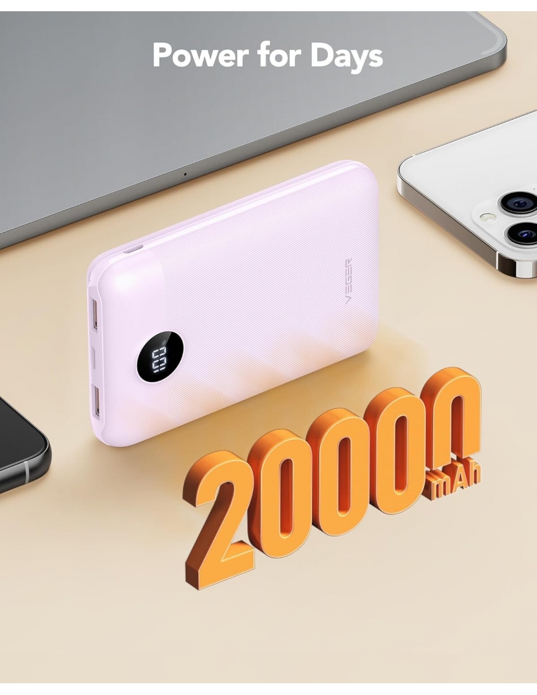 VEGER Power Bank 20000mAh, 22.5W Caricatore Portatile Ricarica Rapida PD3.0 QC4.0, 3 uscite USB C Powerbank Display a LED compatibile con iPhone 14/13/12 iPad Samsung S22 S21 Huawei Xiaomi Tablet ecc. Colore Viola