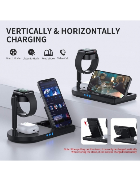 Stazione di ricarica Wireless 4 In 1 Universale Apple Samsung tutti Smartphone Nero