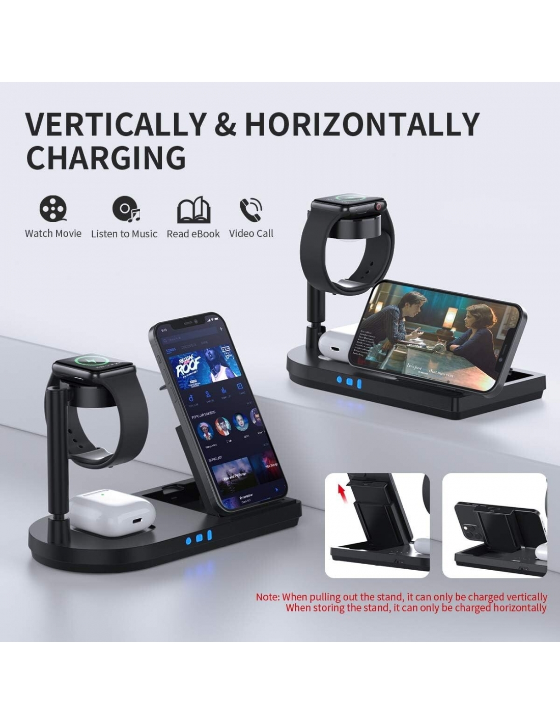 Stazione ricarica Wireless 4 In 1 Universale Apple Samsung tutti Smartphone Nero
