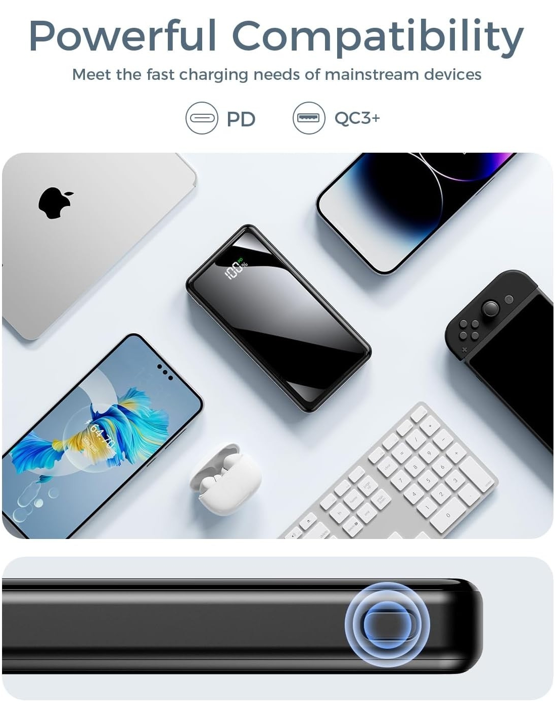 - Ampia compatibilità: questo power bank è compatibile con una vasta gamma di dispositivi, tra cui iPhone 16, 15, 14, 13, Galaxy e Google. Indipendentemente dalla marca del tuo telefono, puoi facilmente collegarlo e iniziare a ricaricarlo. È la soluzione di ricarica universale perfetta per casa, ufficio e viaggi.