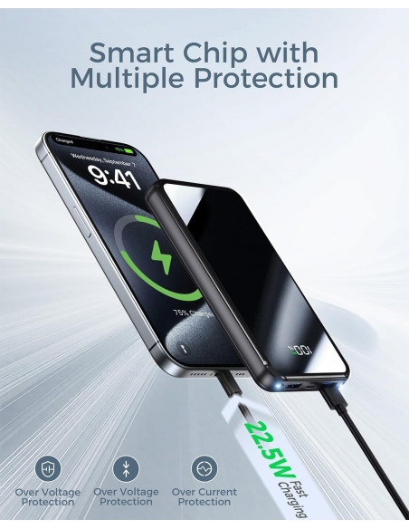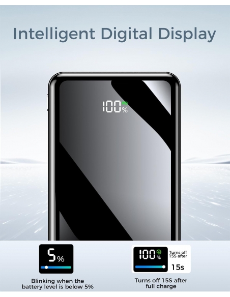 - Protezione di sicurezza: il power bank è dotato di molteplici funzioni di protezione di sicurezza per prevenire sovraccarichi, scariche eccessive e cortocircuiti, garantendo un'esperienza di ricarica senza preoccupazioni per i tuoi dispositivi. Regola in modo intelligente la potenza in uscita durante la ricarica per un'efficienza ottimale. Scegli questo power bank per la massima sicurezza e affidabilità per i tuoi dispositivi elettronici.