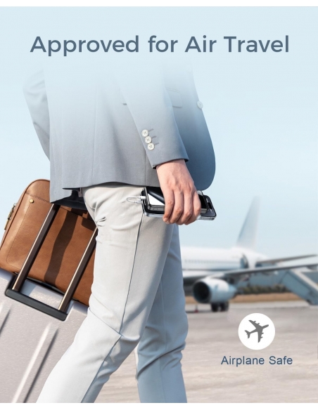 - Design portatile: il suo design leggero ed elegante lo rende facile da trasportare, adattandosi perfettamente alla borsa o alla tasca. Non dovrai mai preoccuparti di rimanere senza energia mentre sei in movimento, poiché occupa uno spazio minimo. Rimani connesso sempre e ovunque, con questa soluzione di alimentazione portatile.