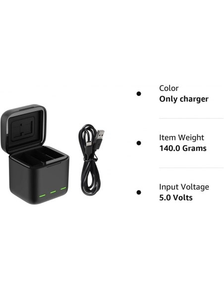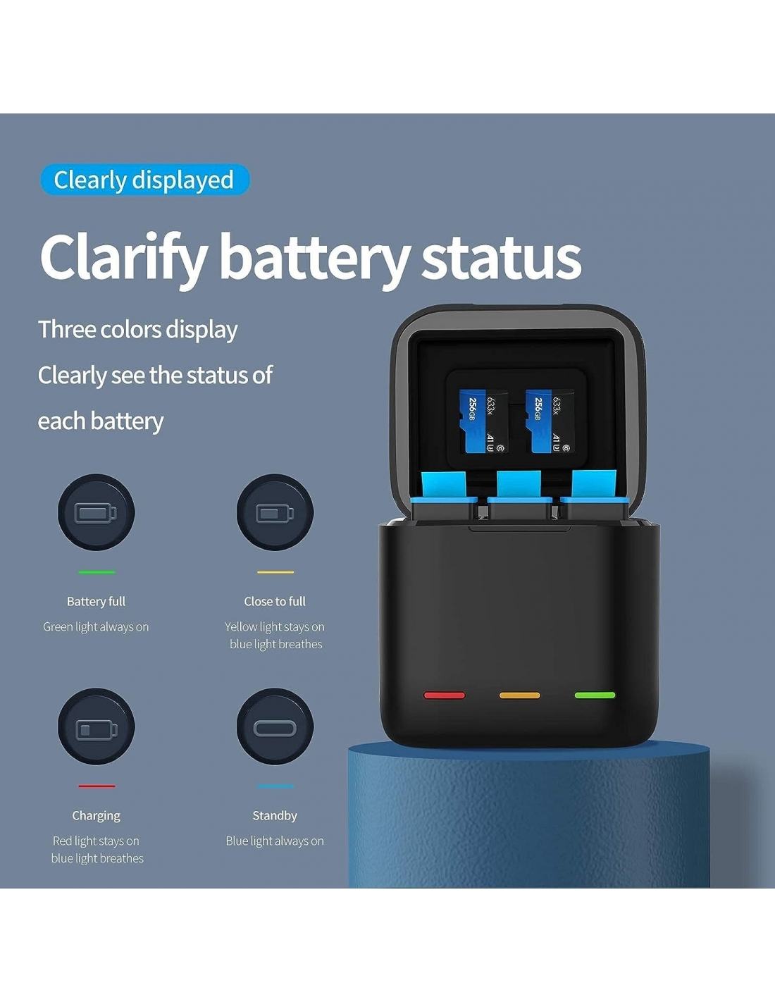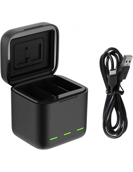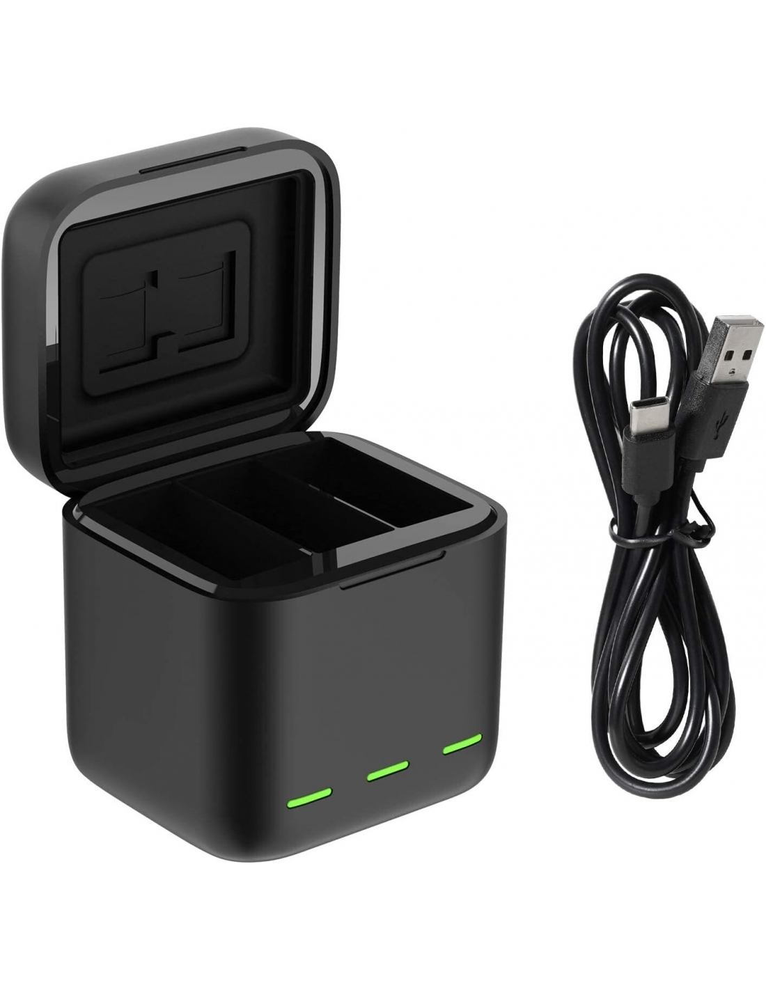 TELESIN Scatola Caricabatterie per GoPro Hero 11 10 9 Batterie Portatili da Viaggio 3 Canali USB Tipo C per Hero 11 10 9 Black Action Camera