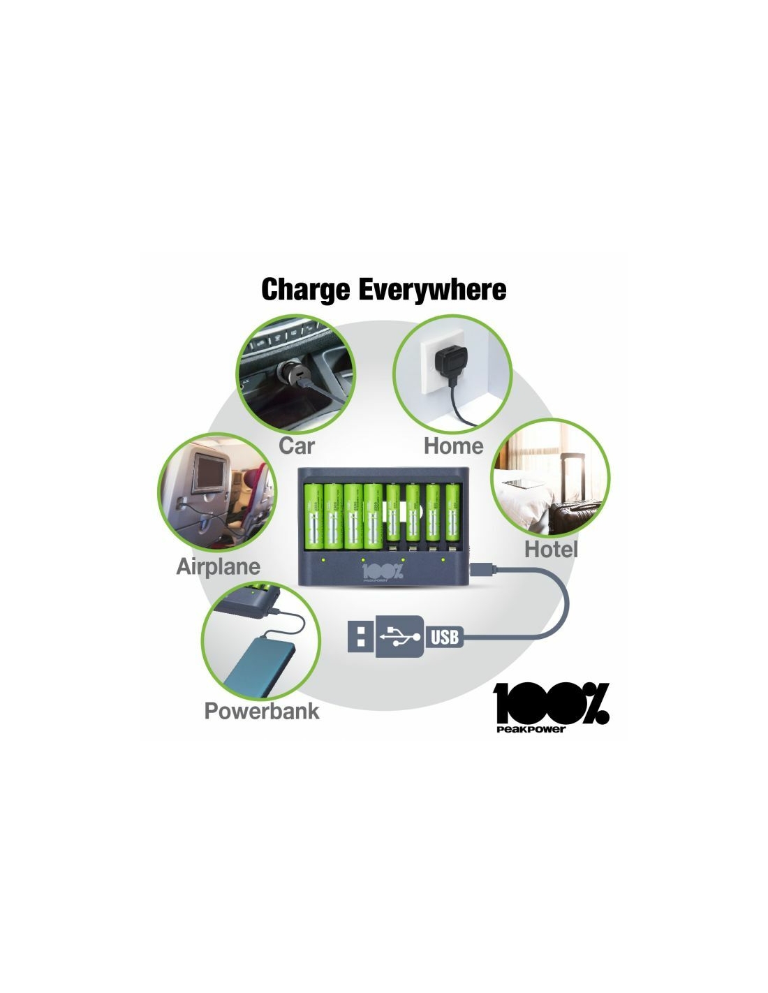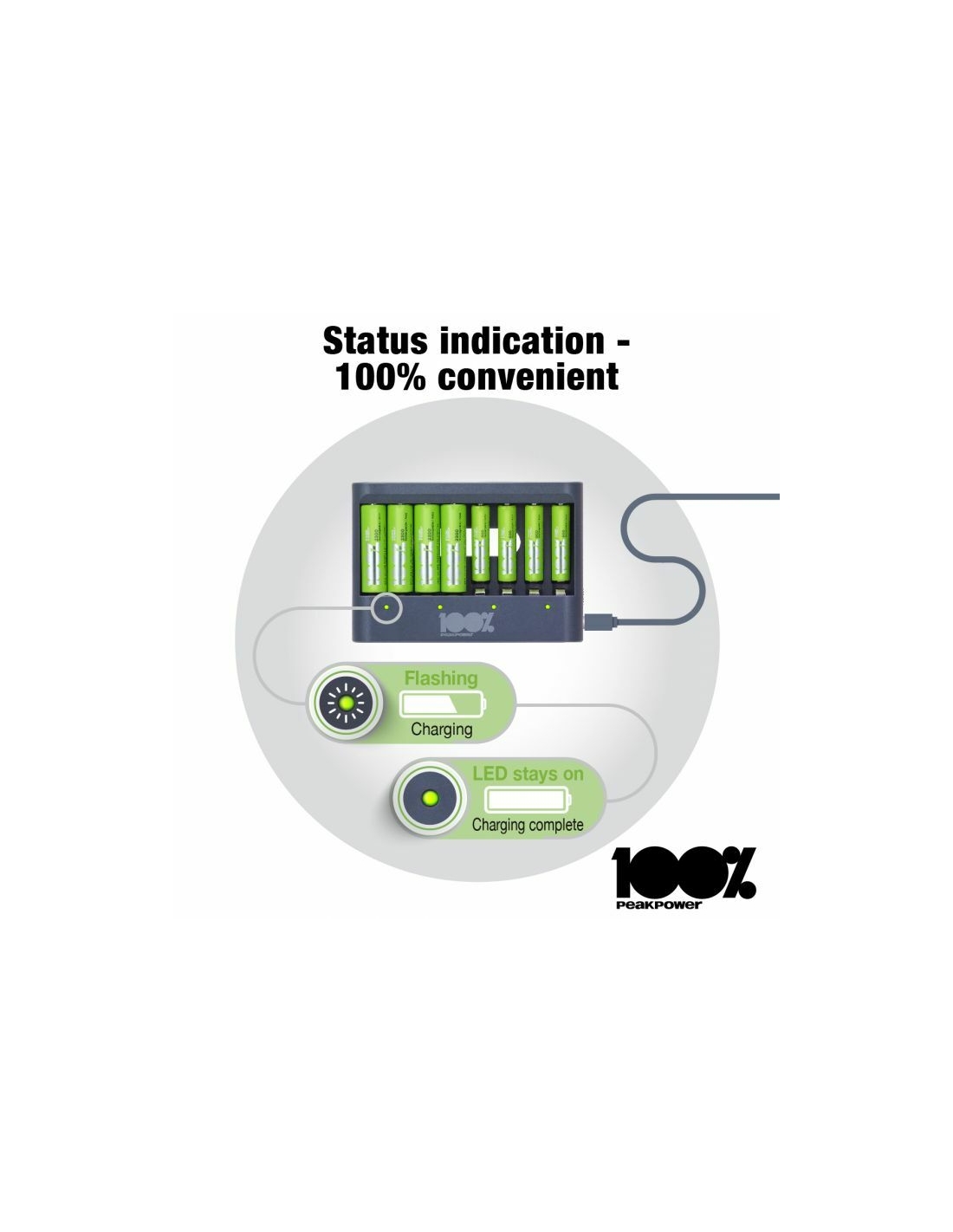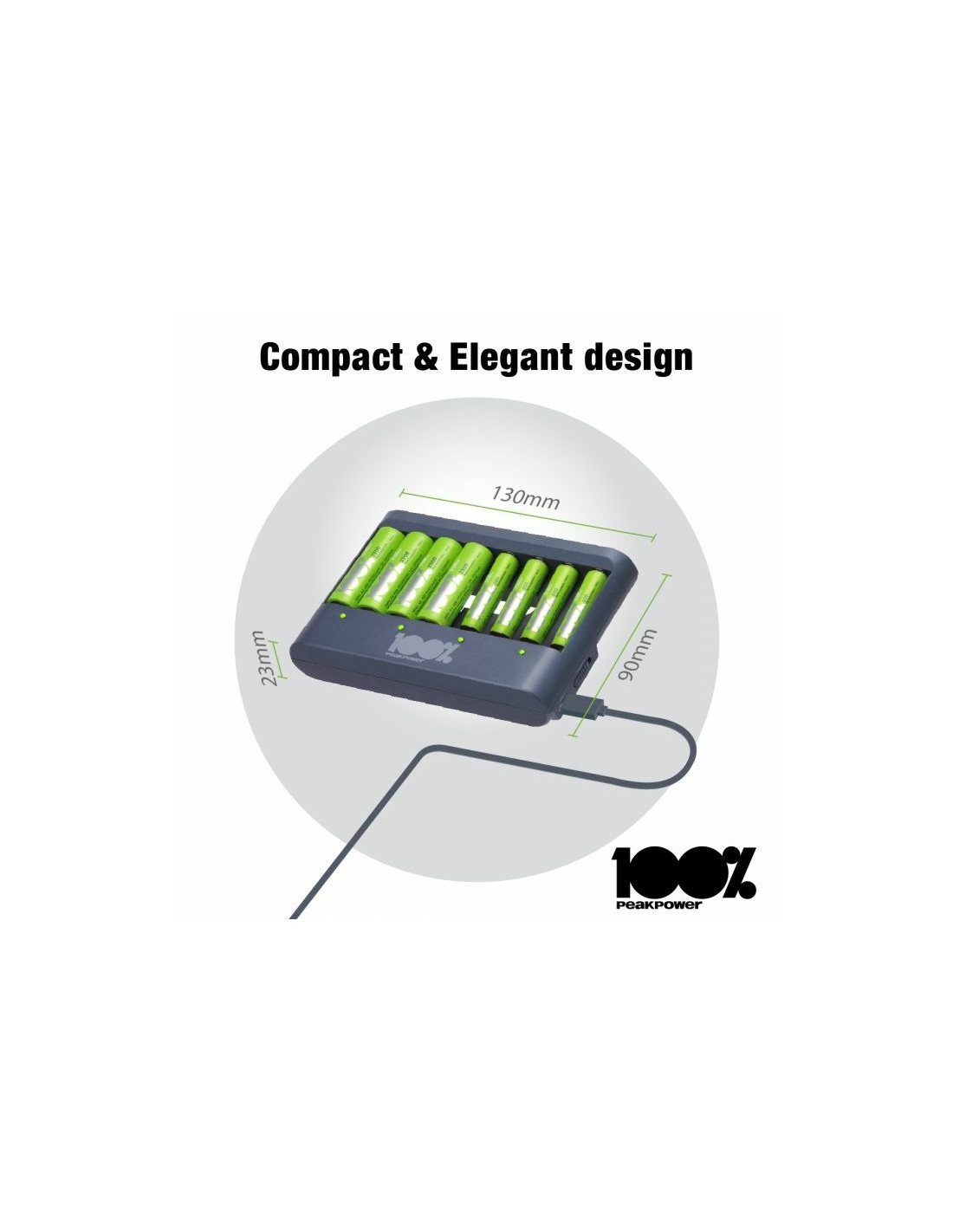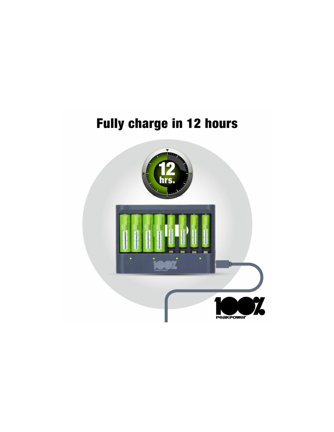 Che sia la tua torcia, controller di gioco o sveglia che necessita di nuove batterie, puoi sempre avere batterie cariche a portata di mano con il caricabatterie PPU811 da 100% PeakPower. Ha una funzione di protezione del timer di sicurezza, che impedisce il sovraccarico delle batterie. Per questo hai la certezza di batterie perfettamente cariche, sempre. I caricabatterie 100% PeakPower sono super leggeri e facili da portare con te ovunque. 100%PeakPower si impegna a mantenere le batterie al 100% del loro livello ottimale. Vai ed esplora senza preoccuparti della potenza!