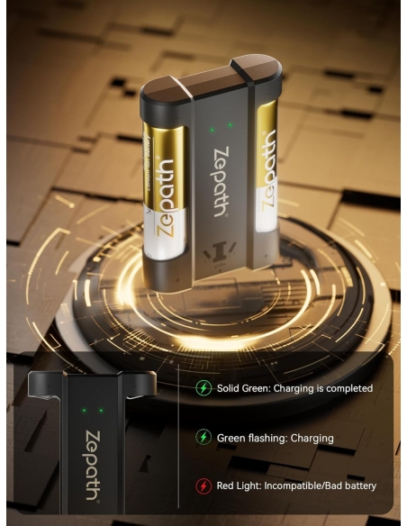 Zepath Confezione da 2 batterie AA ricaricabili al litio con caricabatteria