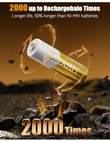 - 【Oltre 2000 cicli di ricarica】Queste batterie AA al litio sono progettate per durare a lungo, vantando oltre 2000 cicli di ricarica. Offrono una longevità eccezionale, riducendo la necessità di sostituzioni frequenti. A lungo termine, vi faranno risparmiare denaro e offriranno un ottimo valore al vostro investimento.