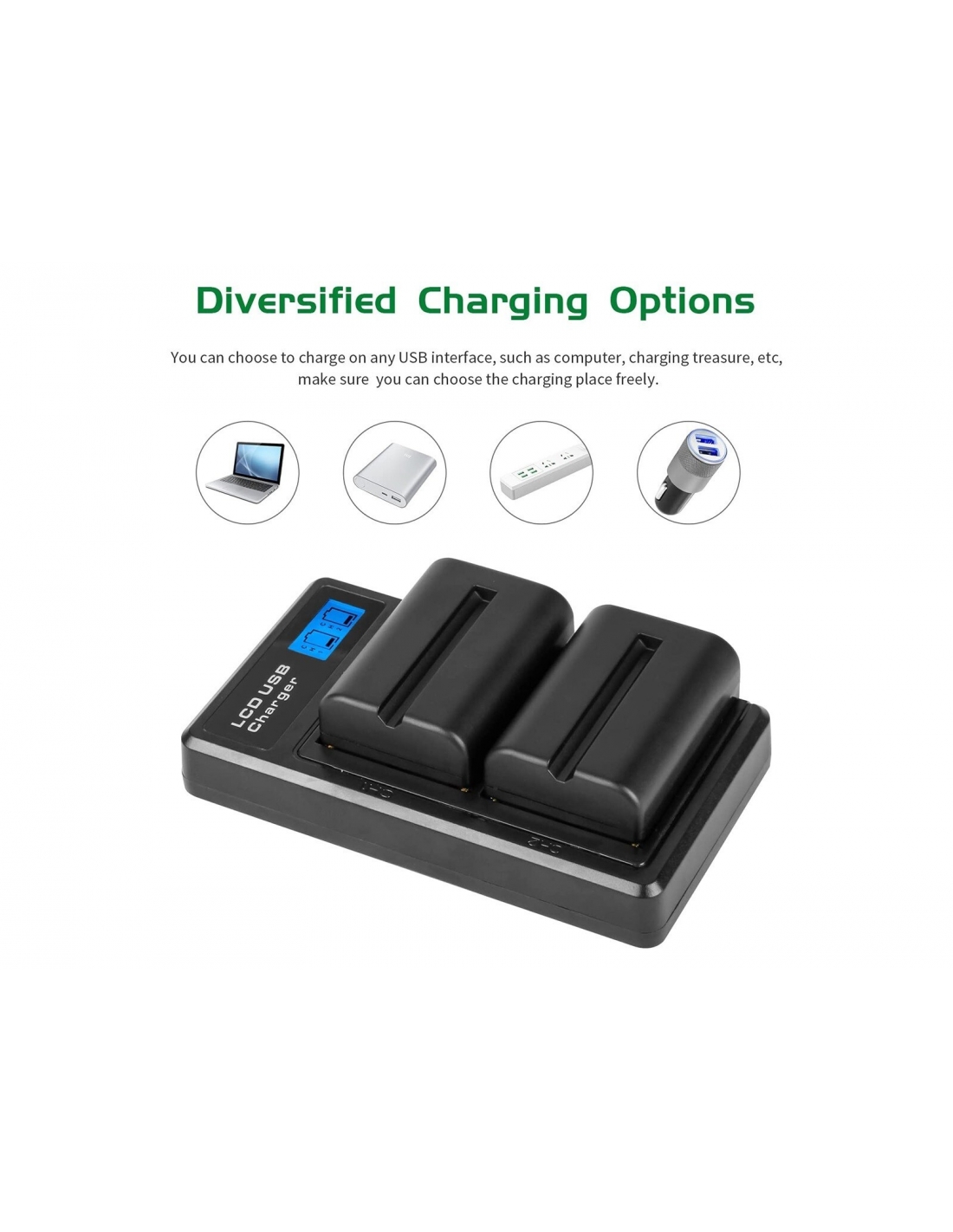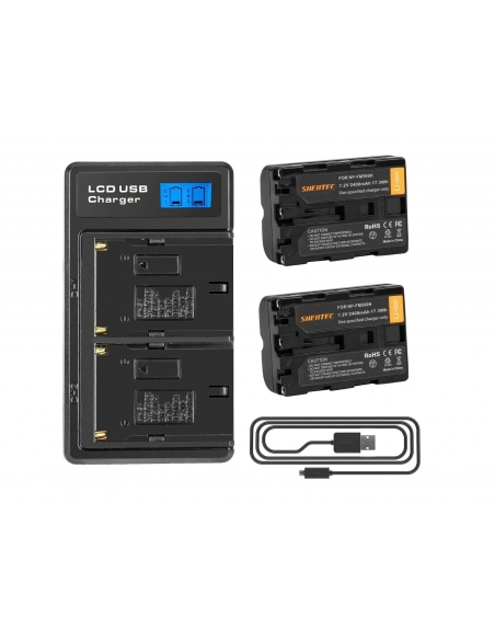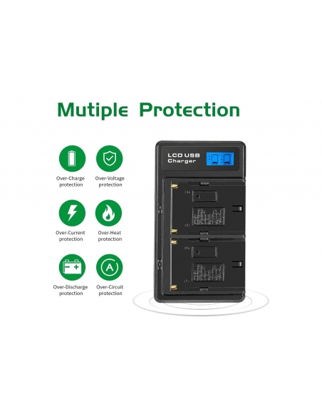 Caricatore Doppio LCD Shentec NP-FM500H carica veloce con 2 Batterie