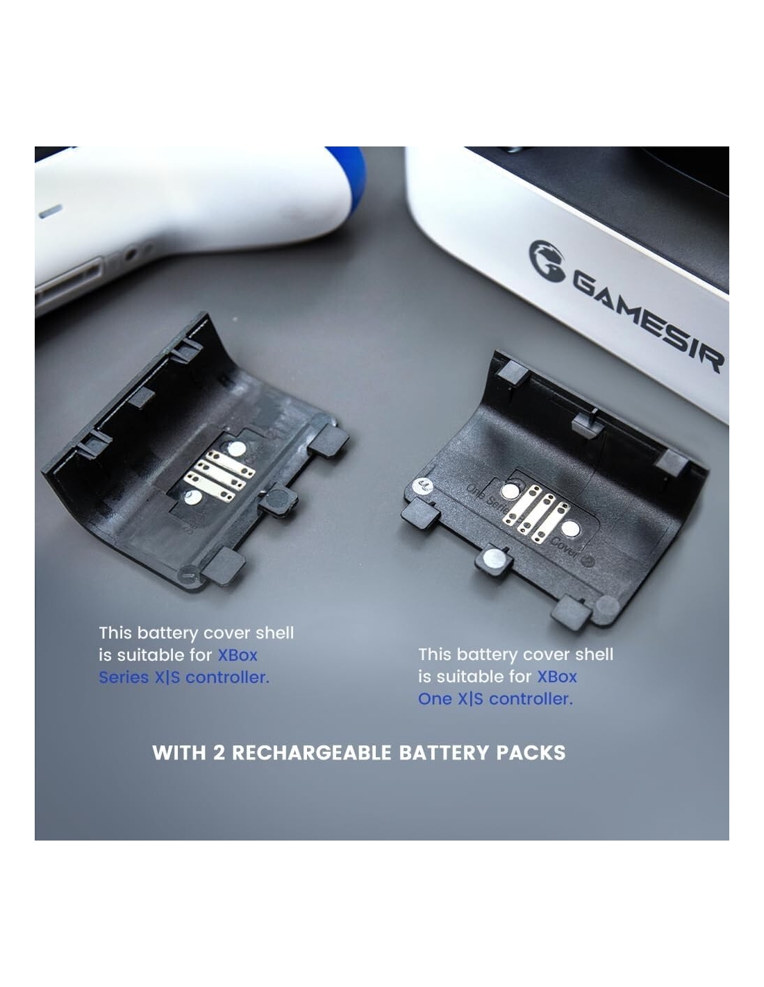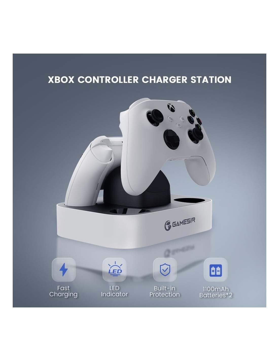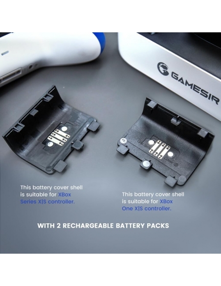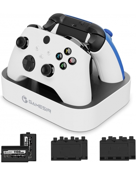 - La stazione di ricarica GameSir è progettata specificamente per i controller XBOX One, XBOX one X|S, XBOX serie X|S. Inoltre, viene fornito con quattro coperchi della batteria, due per Xbox One e due per XBOX Series X|S! Inoltre, con due slot per controller, che possono essere caricati contemporaneamente! Fornisci tempo di gioco infinito e dì addio alla batteria scarica!