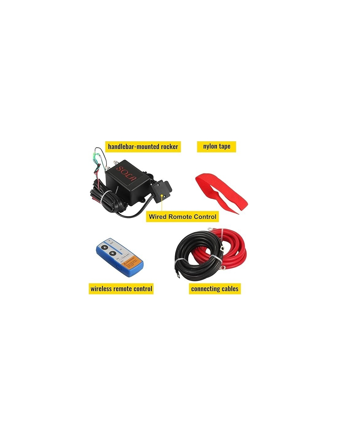 - [Impermeabile e Sicuro] Il verricello elettrico è dotato di una cassetta di avvertenza di sicurezza impermeabile, che garantisce la sicurezza di base anche in aree fangose e acquose. Telecomando senza fili remoto, lontano dai potenziali pericoli del veicolo.
