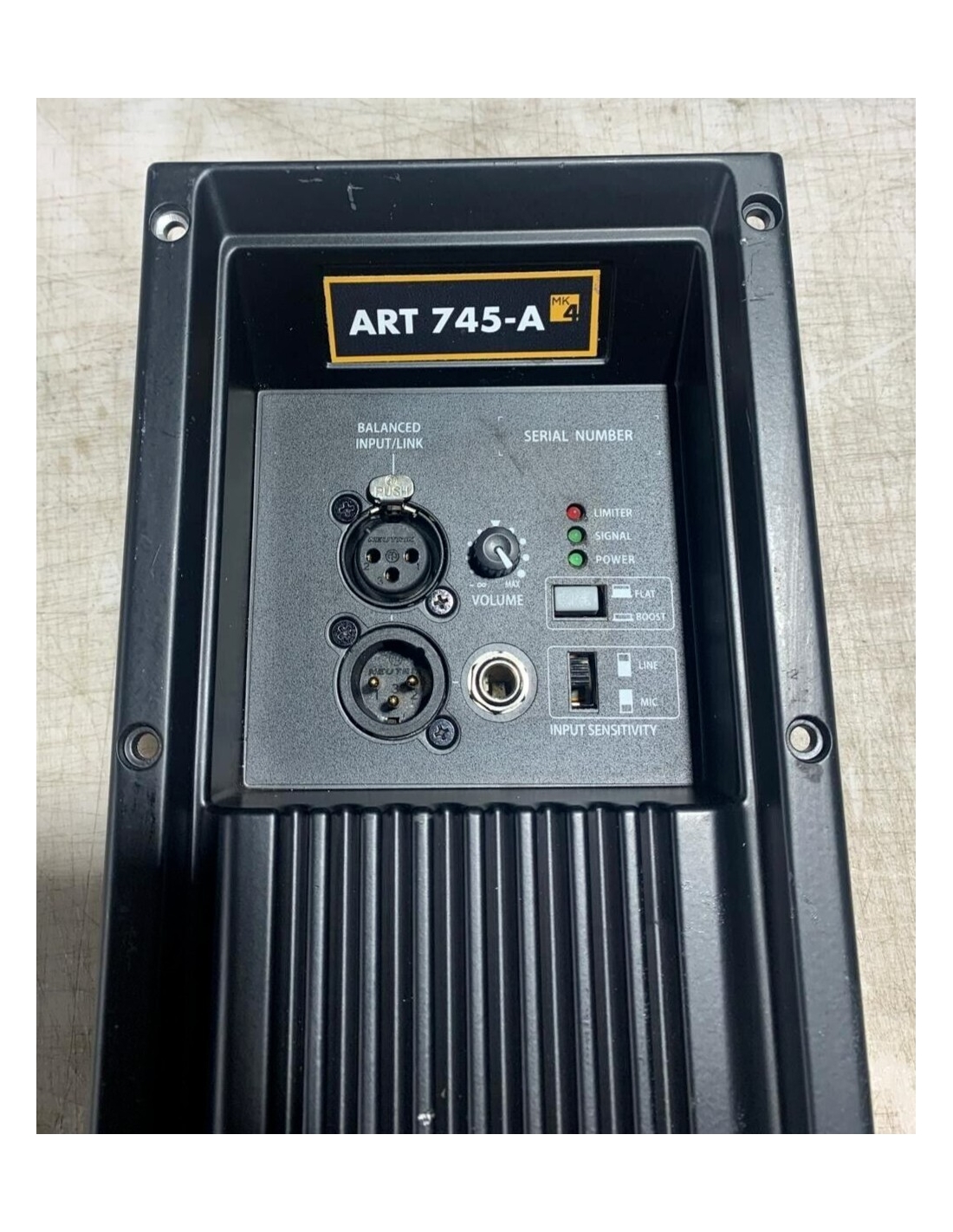 L'ART 745-A MK4 non ha rivali nella sua categoria. Il driver a compressione con cupola in titanio da 4.0" e magnete al neodimio offre una chiarezza vocale unica e una proiezione del suono costante su tutta l'area d'ascolto. Il woofer da 15" al neodimio offre una risposta estremamente lineare e un controllo preciso delle basse frequenze. I trasduttori sono prodotti utilizzando le più avanzate tecnologie di assemblaggio. L'amplificatore a due canali eroga 1400 W ed è controllato da un DSP che si occupa del crossover, dell'equalizzazione, del controllo di fase, del soft limiting e delle protezioni dei singoli trasduttori.