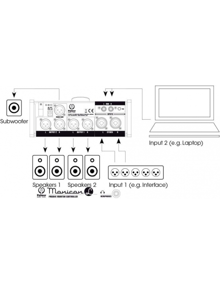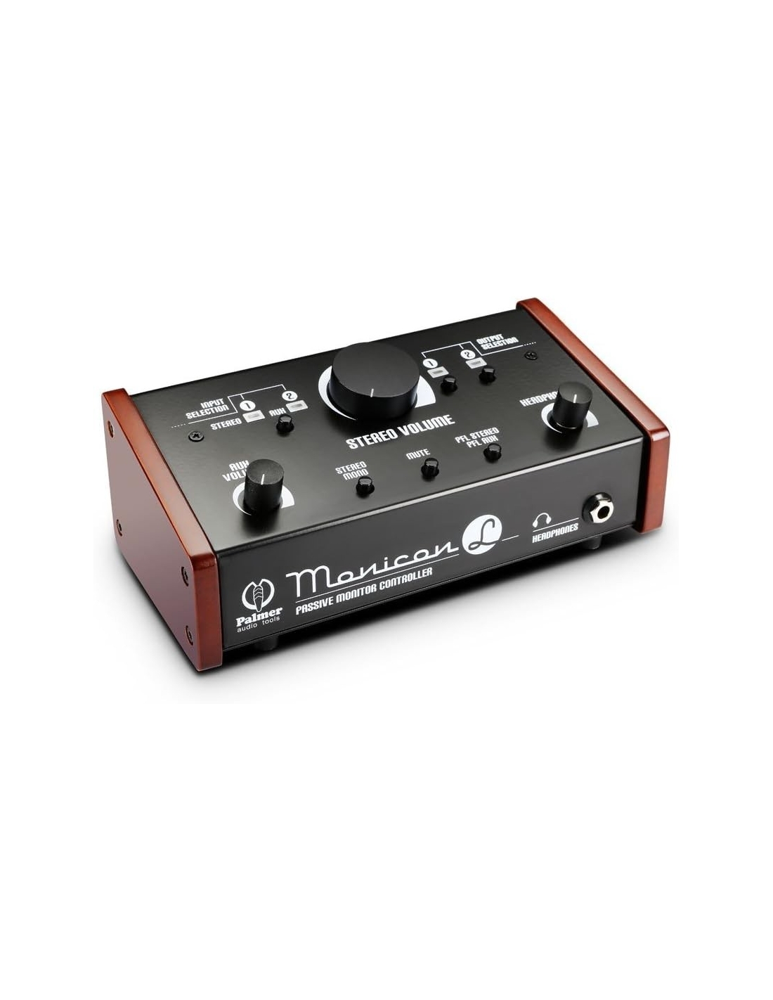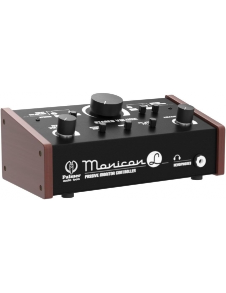 Il Palmer Monicon L è un preciso controllo analogico del volume che si collega tra il computer o l'interfaccia audio e i diffusori attivi. Il circuito è completamente passivo e non si affievolisce, mentre gli indicatori LED e l'amplificatore per cuffie integrato sono alimentati dall'alimentatore in dotazione.