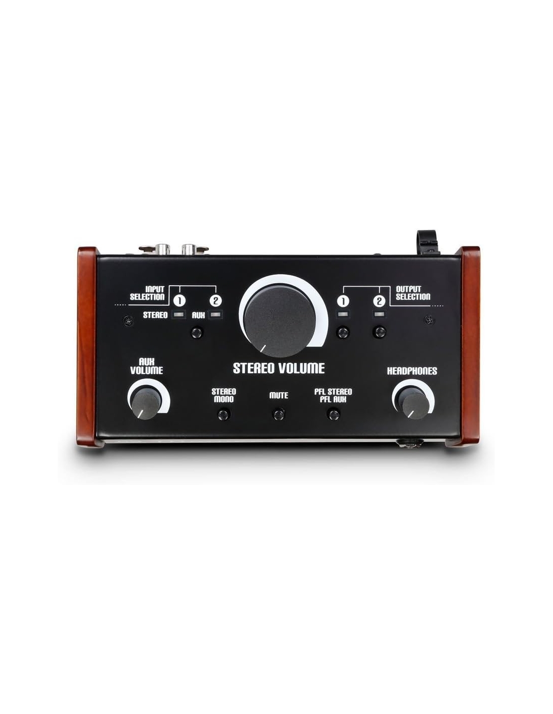 Le prese combo bilanciate fungono da ingressi stereo, mentre l'ingresso AUX del Monicon L è dotato di prese RCA e di un jack stereo da 3,5 mm. Il banco compatto offre uscite per due coppie di monitor e un'uscita somma mono tramite prese XLR femmina. Gli ingressi stereo o ausiliari possono essere selezionati separatamente o insieme. Oltre al controllo del volume di grande formato, il Monicon L è dotato di interruttori mono, mute e PV, di un'uscita per cuffie da 6,35 mm e di pulsanti separati per gli ausiliari e le cuffie per un comodo utilizzo.