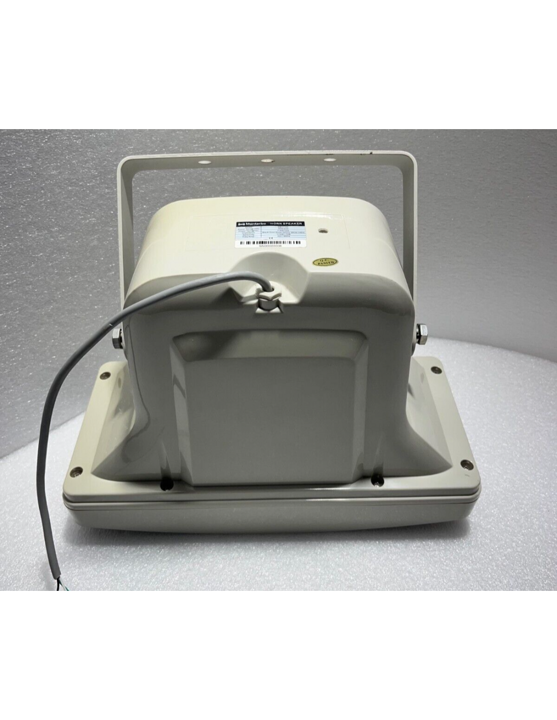 Proiettore a larga banda in ABS, con trattamento anti-UV, corredato di staffa di fissaggio in acciaio inox. La particolare realizzazione e la scelta di materiali di ottima qualità conferiscono all'apparecchio un'elevata robustezza meccanica e ne consentono l'uso anche in condizioni ambientali e atmosferiche difficili. Ideale per messaggi vocali e sottofondi musicali di buona qualità.