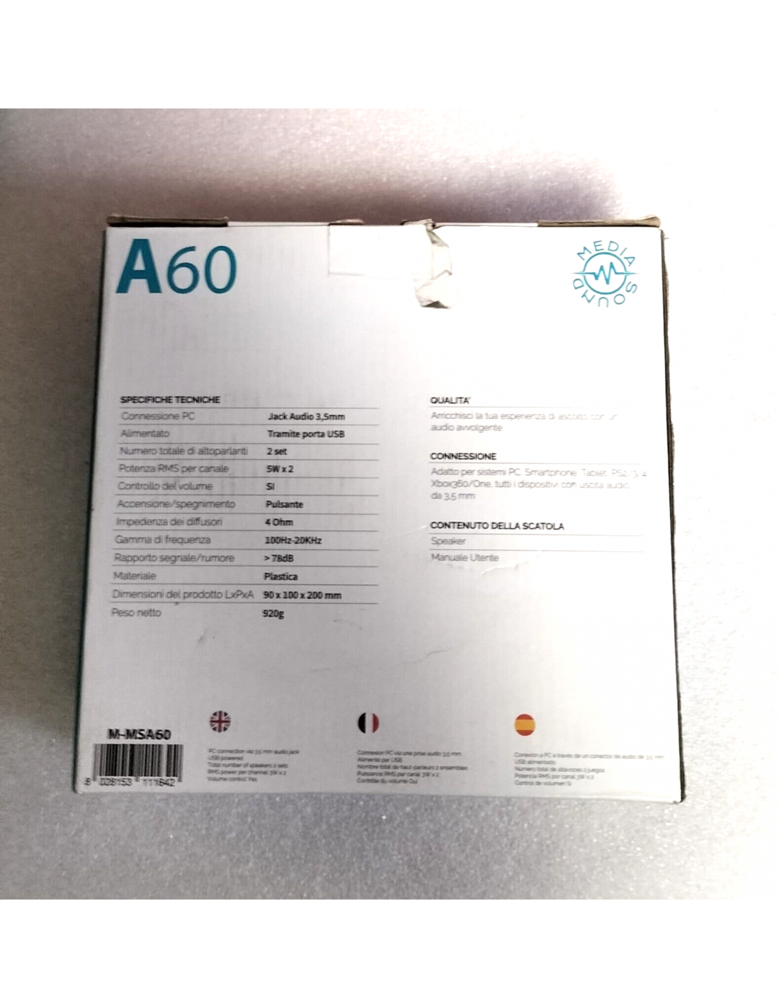 MEDIACOM MEDIA SOUND 2.0 A60 M-MSA60 Casse Speaker 20W USB PC Laptop Smartphone
