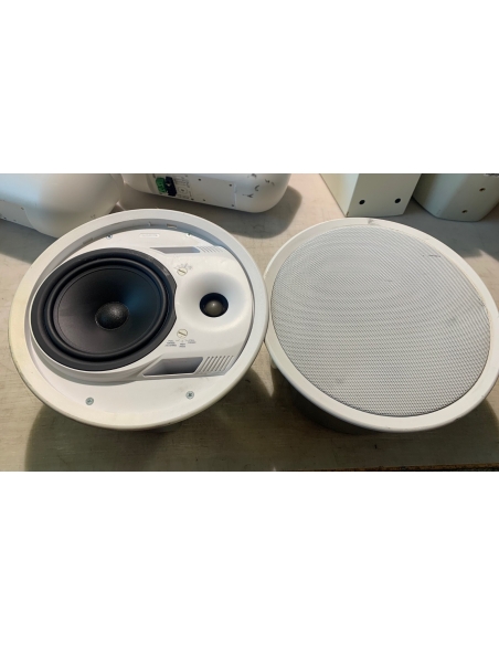 L'SP400C è un gruppo completo di altoparlanti bass-reflex a due vie da incasso progettato per facilitare l'installazione, una copertura estremamente ampia e un rinforzo del suono a gamma completa ad alta fedeltà. L'SP400C è ideale per l'uso nei sistemi musicali aziendali e nelle applicazioni musicali di primo piano/sottofondo. L'installazione dell'SP400C è semplice. L'assemblaggio in un unico pezzo include il backcan, le linguette di montaggio (morsetti), il bordo del deflettore anteriore, i driver ad alta e bassa frequenza e la nostra guida d'onda a due vie proprietaria basata sui pluripremiati monitor da studio HR824 di Mackie Designs. Vengono fornite le guide di supporto che si fissano all'anello a C (incluso) e distribuiscono il peso dell'altoparlante ai canali a T del pannello del controsoffitto. È incluso anche un modello per contrassegnare la dimensione di ritaglio corretta.