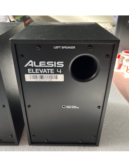 Elevate 4 è una coppia di monitor dalle dimensioni contenute che si aggiungono alla fortunata serie di diffusori multimediali progettati per l'home studio dalla Americana Alesis. Amplificate con 40W RMS generati da un finale di potenza in Classe AB integrato in uno dei cabinet in legno multistrato dalla elegante finitura color nero, questa coppia di casse vede la presenza su ciascun diffusore di un woofer da 4" e di un tweeter a cupola da 1" inserito in una guida d'onda progettata per una miglior rappresentazione dell'immagine stereo. Nel pannello frontale del primo monitor (ove è collocato l'ampli) avremo un potenziometro per il controllo del volume, che funge altresì da interruttore per l'accensione/spegnimento. Gli ingressi stereo RCA sono collocati nel pannello posteriore del monitor alimentato, mentre la presa cuffia da 1/8" è anch'essa collocata nel pannello frontale. L'interconnessione tra i due monitor (attivo e passivo) avviene mediante un cavo fornito in dotazione. Presenti connessioni bilanciate su prese jack TRS da 1/4" e un'uscita dedicata alla connessione ad un subwoofer amplificato opzionale.