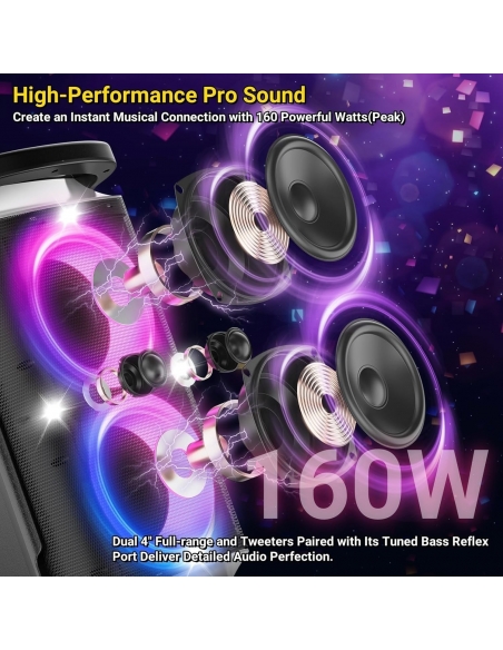 TPBEAT Cassa Bluetooth Portatile Potente,160W (Peak) Party Wireless