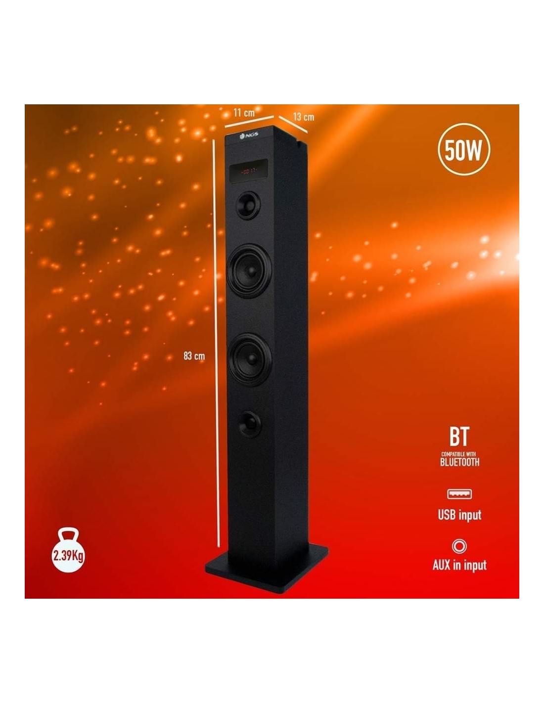 NGS SKY CHARM Altoparlante a Torre Bluetooth 50W Telec. Ottico USB Radio FM Aux