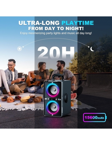 - 【Ricarica ultra veloce】Cassa bluetooth portatile ha la funzione di ricarica rapida PD e QC da 30 W, quindi può essere caricata completamente in sole 4 ore. Con una batteria che dura fino a 15 ore (il tempo di riproduzione effettivo può variare a seconda del volume, dell'ambiente e del contenuto), è ideale per feste all'aperto e riunioni di famiglia in giardino o sulla spiaggia