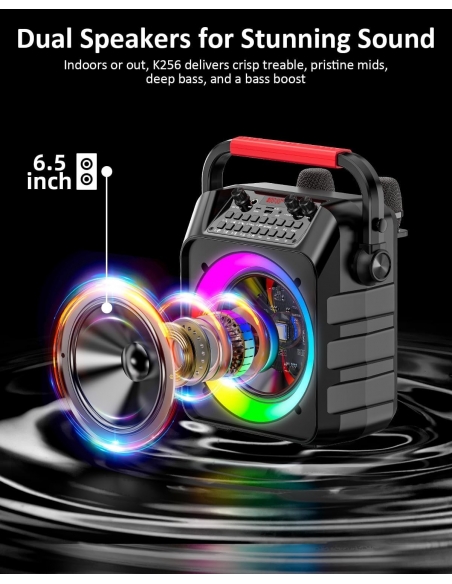 Karaoke K256 con 2 microfoni Cassa Portatile Bluetooth con LED Luci, karaoke professionale completo,Ideale per Home Party e Regalo,Stereo TWS,Supporta USB/TF/AUX