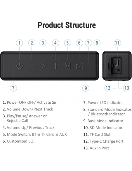 - Suono potente e di alta qualità: premendo un pulsante, l'altoparlante Bluetooth può riprodurre 3 diversi effetti sonori, bassi, musica e 3D, a seconda delle esigenze. Cambiando gli effetti sonori, i piacevoli effetti sonori non saranno influenzati.