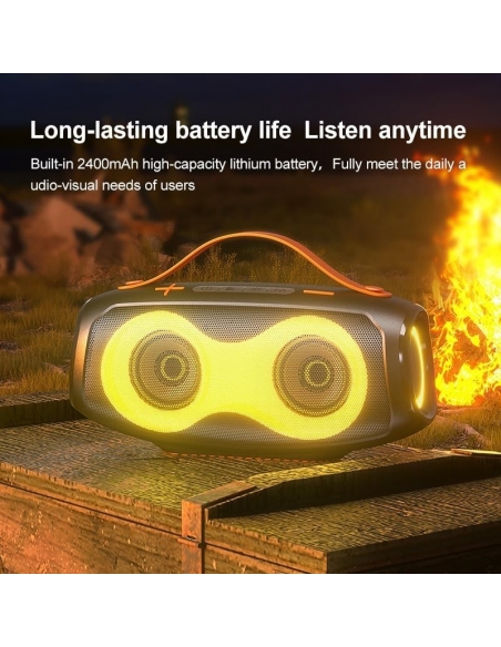 - 【Altoparlante portatile】Puoi portarlo in spiaggia, alle feste all'aperto, in campeggio e in altre occasioni. Questo altoparlante Bluetooth portatile per esterni è progettato per famiglie attive e attività all'aria aperta. È realizzato in solida plastica ABS e morbida gomma traslucida, con cinghie staccabili per facilitarne il trasporto.