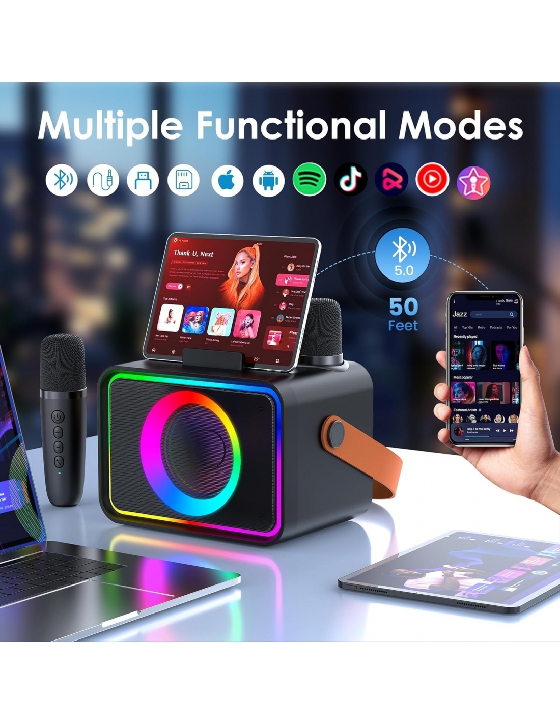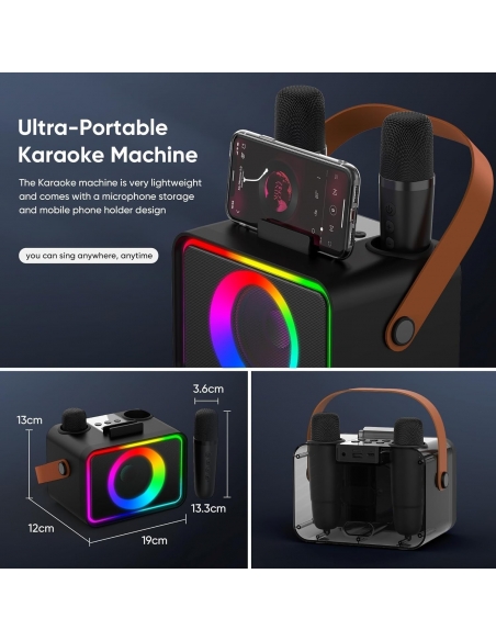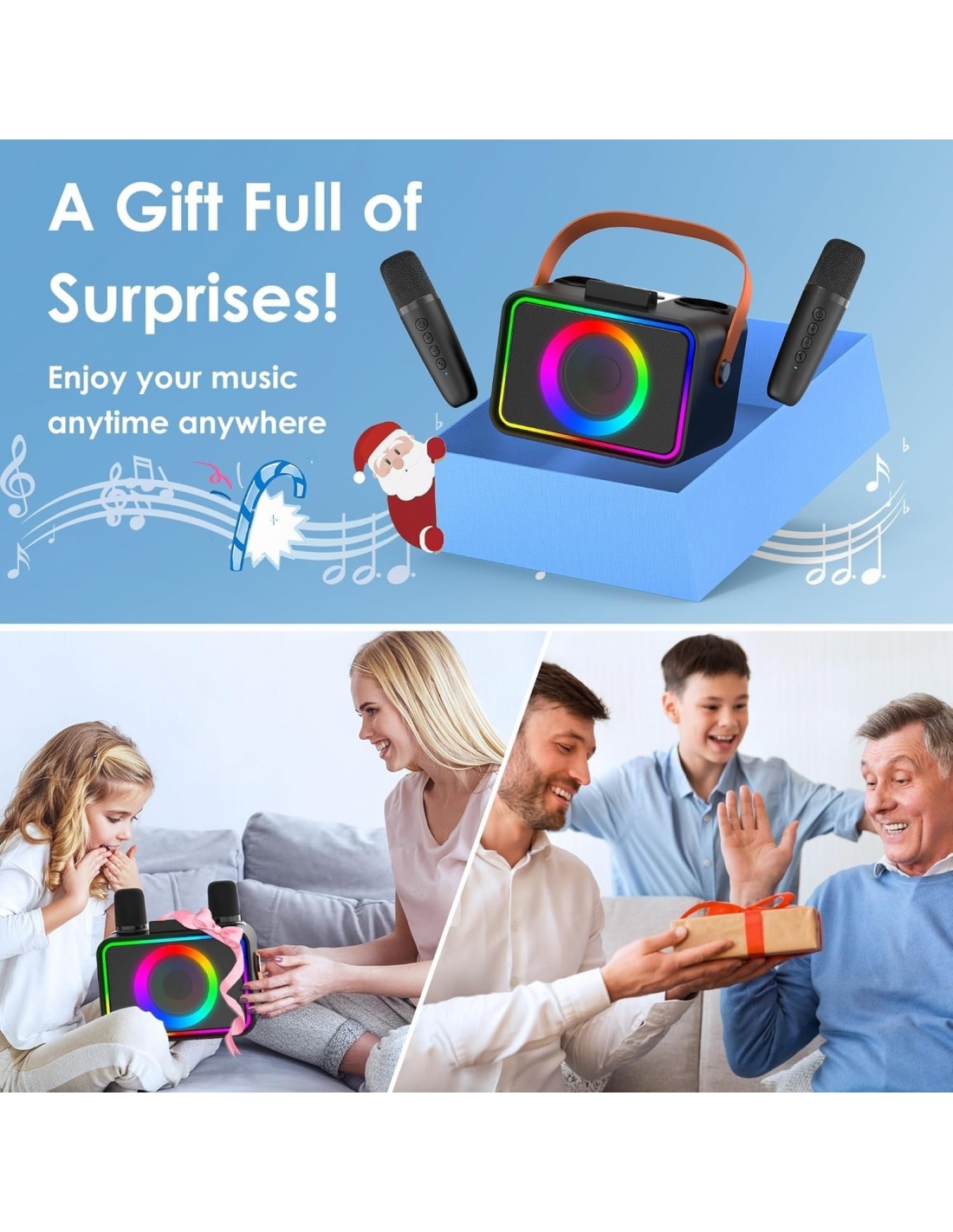Karaoke K26 con 2 microfoni per adulti e bambini, altoparlante portatile