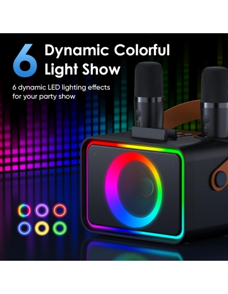 - 【Spettacolo dinamico di luci multicolore 】questo sistema PA per altoparlanti karaoke è progettato per eventi notturni karaoke con 6 modalità di illuminazione, porta un nuovo livello di eccitazione alla tua festa con lo spettacolo di luci colorate che si sincronizzano al ritmo della musica, puoi facilmente personalizzare gli effetti di luce in base alle tue preferenze semplicemente premendo il pulsante indipendente per accendere le luci. Rendendo qualsiasi incontro più memorabile con questi effetti di luce visivamente mozzafiato che eleveranno l'atmosfera, puoi goderti una festa colorata e allegra.