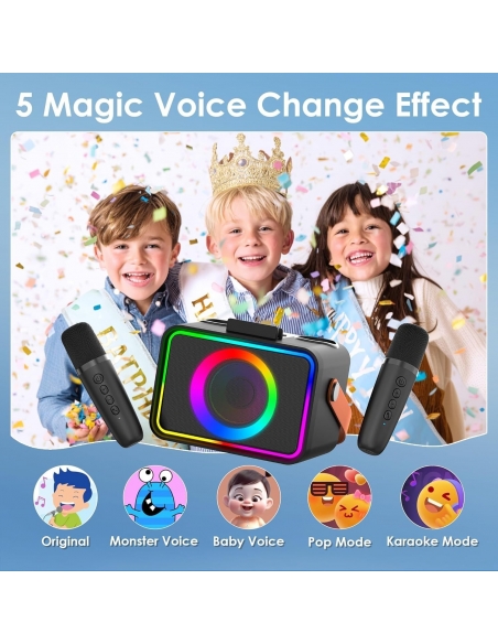 - 【5 effetti sonori magici 】il sistema Bluetooth per microfono karaoke è dotato di 5 effetti vocali magici: mostro, bambino, modalità karaoke, modalità pop, originale/accompagnamento, questo altoparlante Bluetooth per feste offre divertimento infinito e felicità per adulti e bambini, idea regalo per feste, vacanze, compleanno, Natale, Pasqua, San Valentino, Halloween, Ringraziamento o Capodanno.