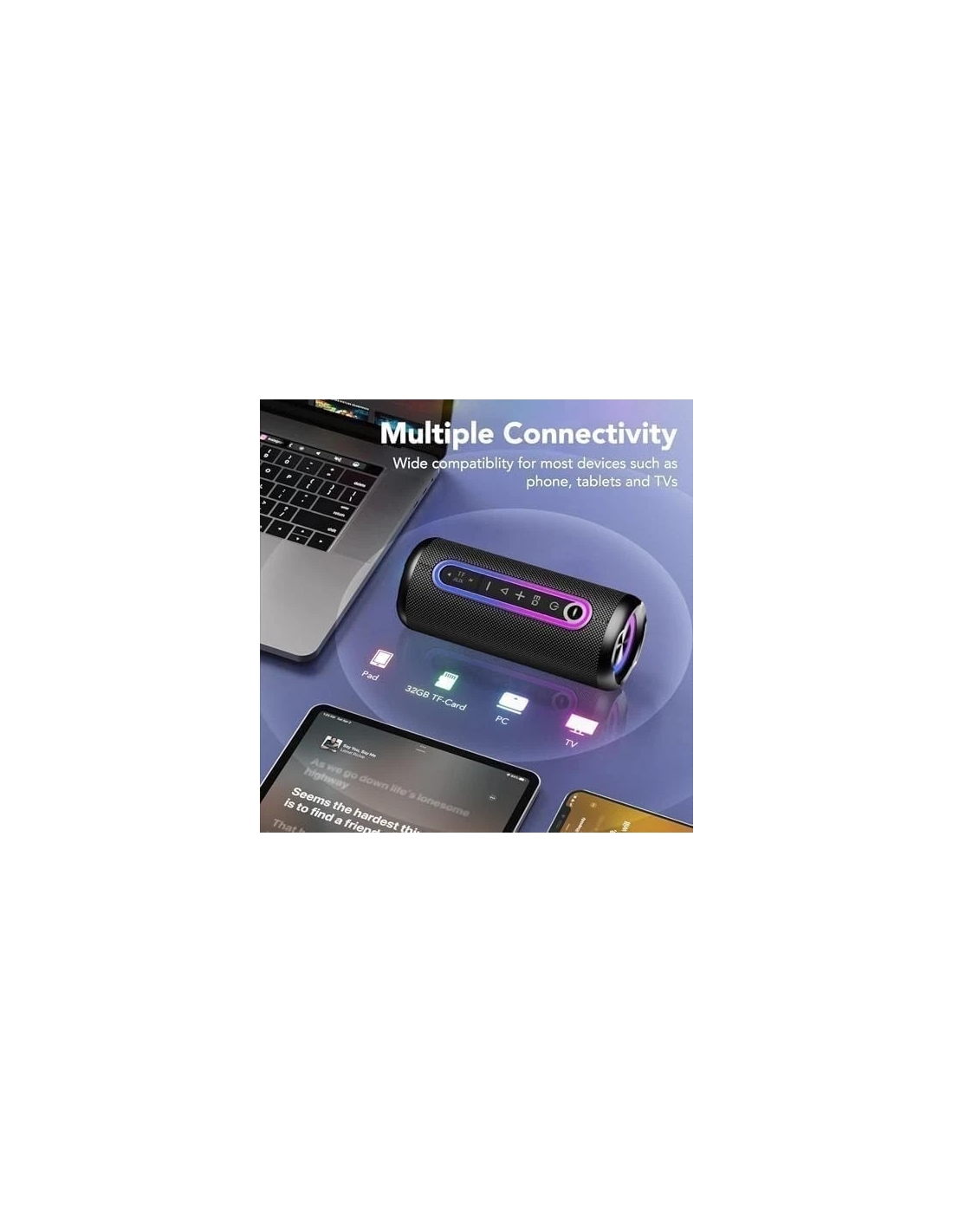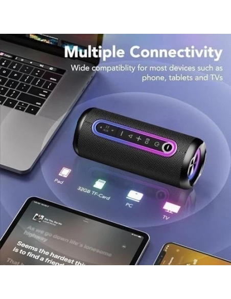 - Bluetooth 5.4 e Ampia Compatibilità: Questo Bluetooth speaker è equipaggiato con la più recente tecnologia Bluetooth 5.4 del 2025, che aumenta la velocità di trasmissione del 90% offre una portata di connessione fino a 20M, garantendo un supporto di segnale eccellente anche durante escursioni all'aperto, giochi in spiaggia o campeggio lontano dalla città. L'cassa ampiamente compatibile, potendo essere accoppiato con qualsiasi dispositivo Bluetooth, e supporta anche schede SD e connessioni AUX.
