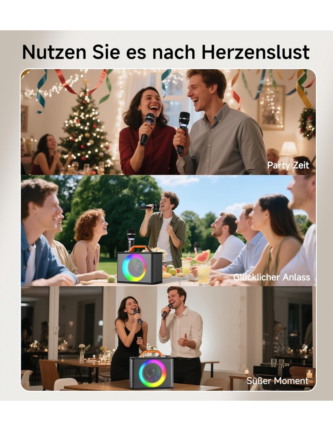 - Adatto a diverse occasioni: la macchina per karaoke MAILANGSHI è dotata di 2 microfoni wireless con portata estremamente lunga, illuminazione a LED e batteria a lunga durata. È perfetta per feste a casa, campeggio, Halloween, Pasqua, Ringraziamento, Natale, Capodanno o altre festività.