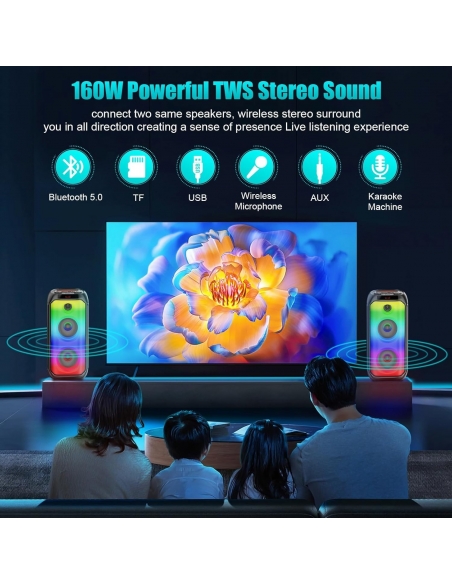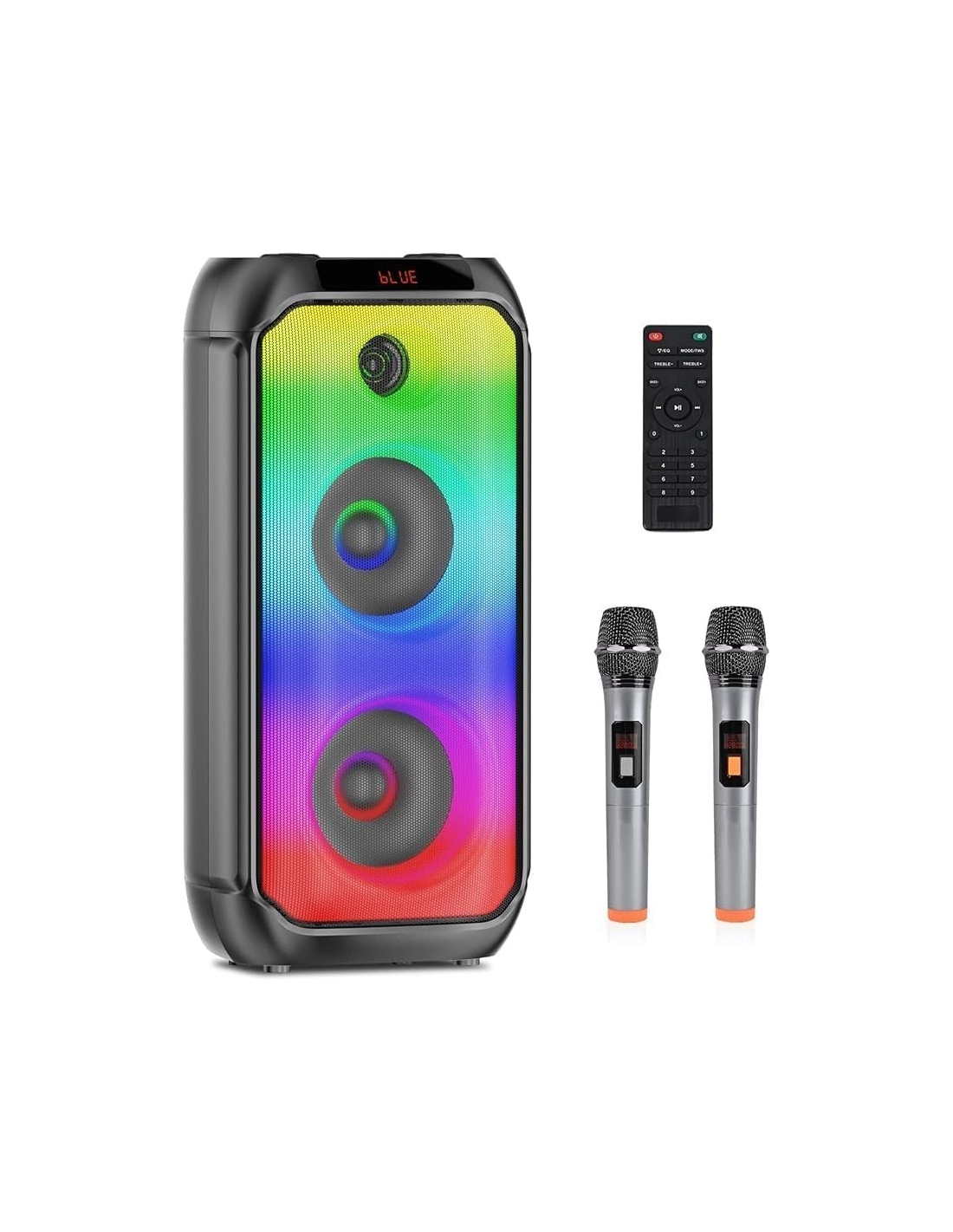 TAMPROAD A58 Altoparlanti Bluetooth con 2 microfoni senza fili, macchina per karaoke portatile, sistema di amplificazione con luci a LED, altoparlante Bluetooth per karaoke compatibile con schede TF/USB, ingresso