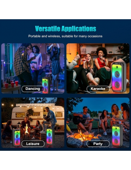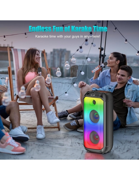 - Altoparlanti Bluetooth potenti da 80 W: la macchina karaoke A58 è un altoparlante wireless portatile grande e potente. È dotata di due driver audio ad alte prestazioni e un processore avanzato, che rendono il suono più chiaro, i bassi più potenti e il volume più moderato. Incorpora due doppi controller ad alte prestazioni e gamma completa da 4 pollici, oltre a un tweeter da 2 pollici, che può amplificare la tua voce, riprodurre la radio e riprodurre brani in streaming. Potenti altoparlanti wireless Bluetooth con bassi, puoi liberare e bruciare la tua passione al ritmo dinamico della musica!