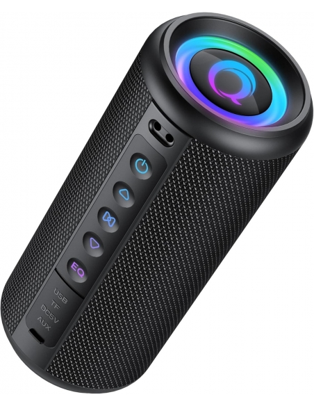 - Modalità EQ e Illuminazione RGB Dinamica: Sincronizza Suono e Luce con Un Solo Tasto Questa cassa bluetooth portatile ti permette di modificare l'uscita audio regolando il suono di diverse frequenze (bassi, medi e alti) secondo le tue preferenze. Dotata di illuminazione RGB dinamica, basta una semplice pressione di un pulsante per attivarla, le luci pulsanti si sincronizzano perfettamente con bassi, medi e acuti, creando uno spettacolo visivo ipnotico.
