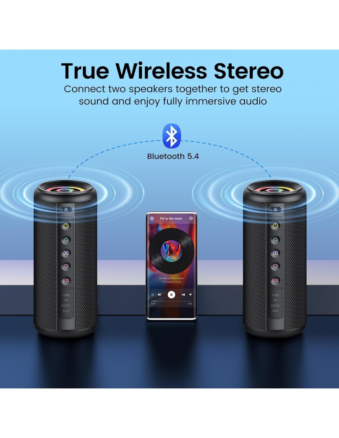- Audio Stereo Full HD da 20W: Suono Ricco e Coinvolgente per Ogni OccasioneLa cassa bluetooth potente dispone di un’uscita totale di 20W, garantendo un’esperienza audio ricca e coinvolgente perfetta per animare feste all’aperto, picnic o momenti di relax. Alimentata da una batteria ad alta energia da 3600 mAh e equipaggiata con la tecnologia DSP avanzata, questo altoparlante bluetooth portatile restituisce ogni nota in modo impeccabile: bassi profondi, medi ricchi e acuti cristallini.