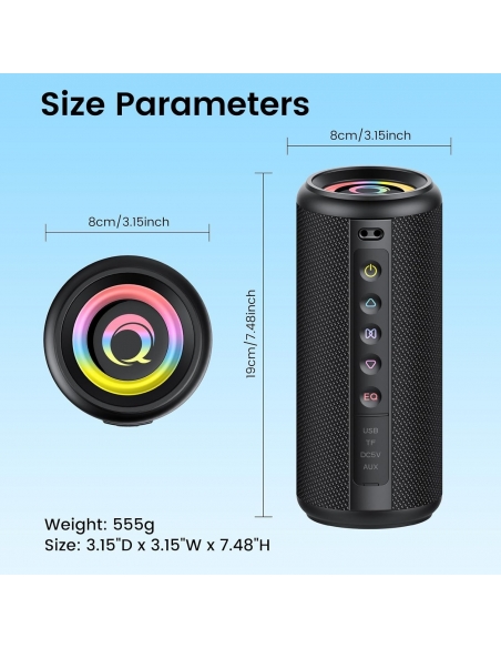 - Modalità EQ e Illuminazione RGB Dinamica: Sincronizza Suono e Luce con Un Solo Tasto Questa cassa bluetooth portatile ti permette di modificare l'uscita audio regolando il suono di diverse frequenze (bassi, medi e alti) secondo le tue preferenze. Dotata di illuminazione RGB dinamica, basta una semplice pressione di un pulsante per attivarla, le luci pulsanti si sincronizzano perfettamente con bassi, medi e acuti, creando uno spettacolo visivo ipnotico.